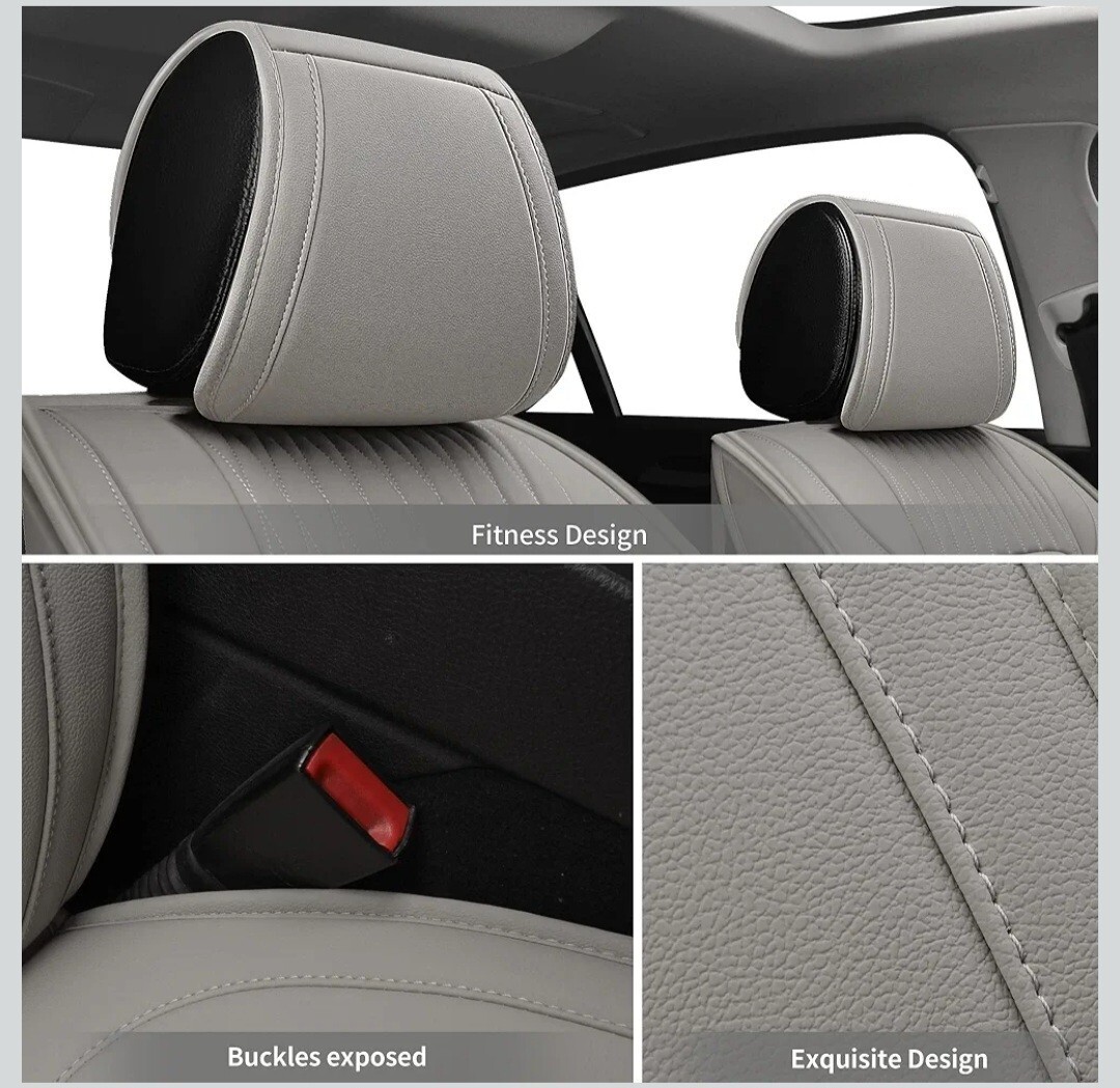 - Leather Car Seat Covers, Full Set, 5 Seats Fit for Most Cars Trucks SUV