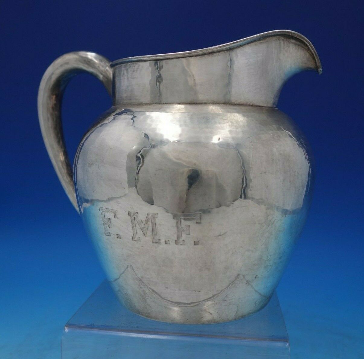 Superb Lebolt sterling silver handmade water pitcher marked #885. This piece holds 4.5 pints, measures 6 1/2" tall x 8", and weighs 22.5 troy ounces. It is monogrammed "F.M.F." (see photos), and is in good vintage condition. Wonderful!
