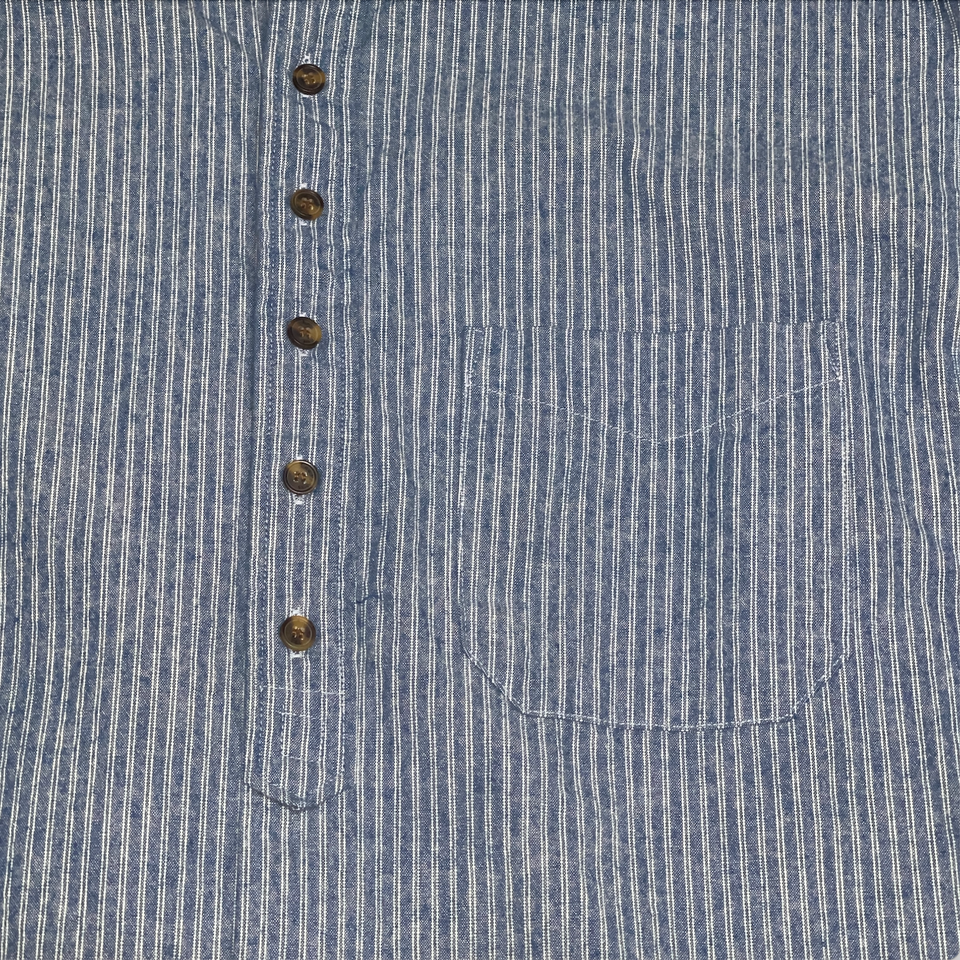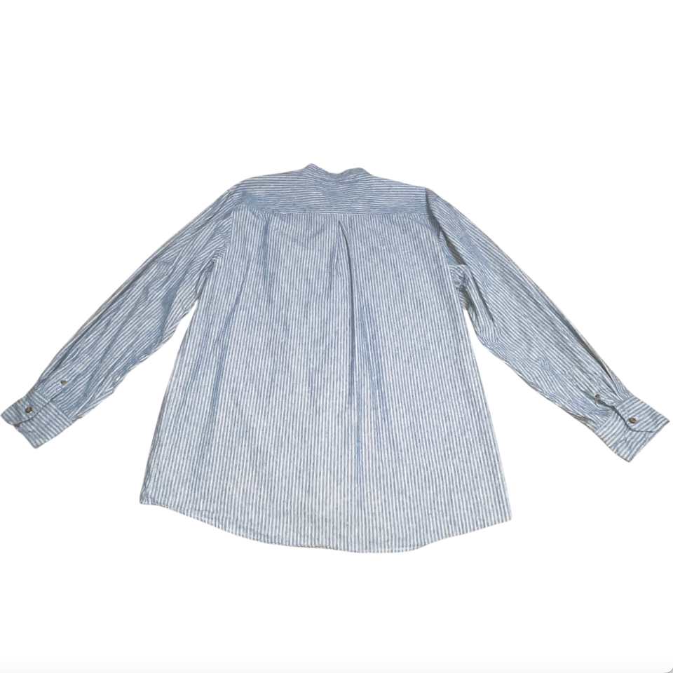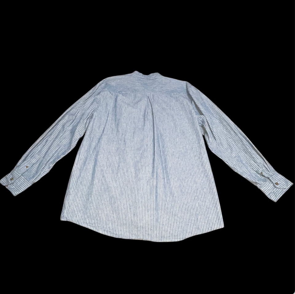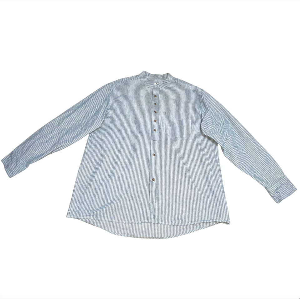 Primary image for Lee Valley Ireland Men's Extra Large Grandfather Shirt Blue Striped Band Collar