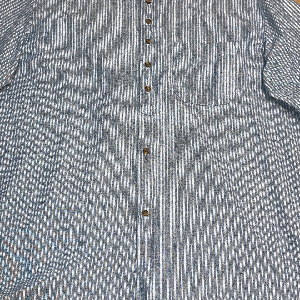Excellent condition. No sign of wear. Size tag XL extra large. Measures 25.5 inches across the chest and 31 inches overall length. Features: 100% cotton, pin stripe, front breast pocket, super soft. Please see all gallery photos. We are a smoke free, pet friendly home. Have a great day!