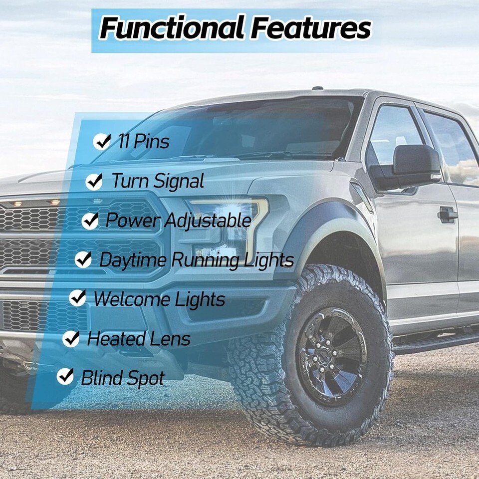 Left Driver Side Mirror Compatible with 2015-2021 Ford F-150, Black, 11-Pin, Power Heated w/ LED Turn Signal, Puddle Light, Blind Spot, Manual Folding