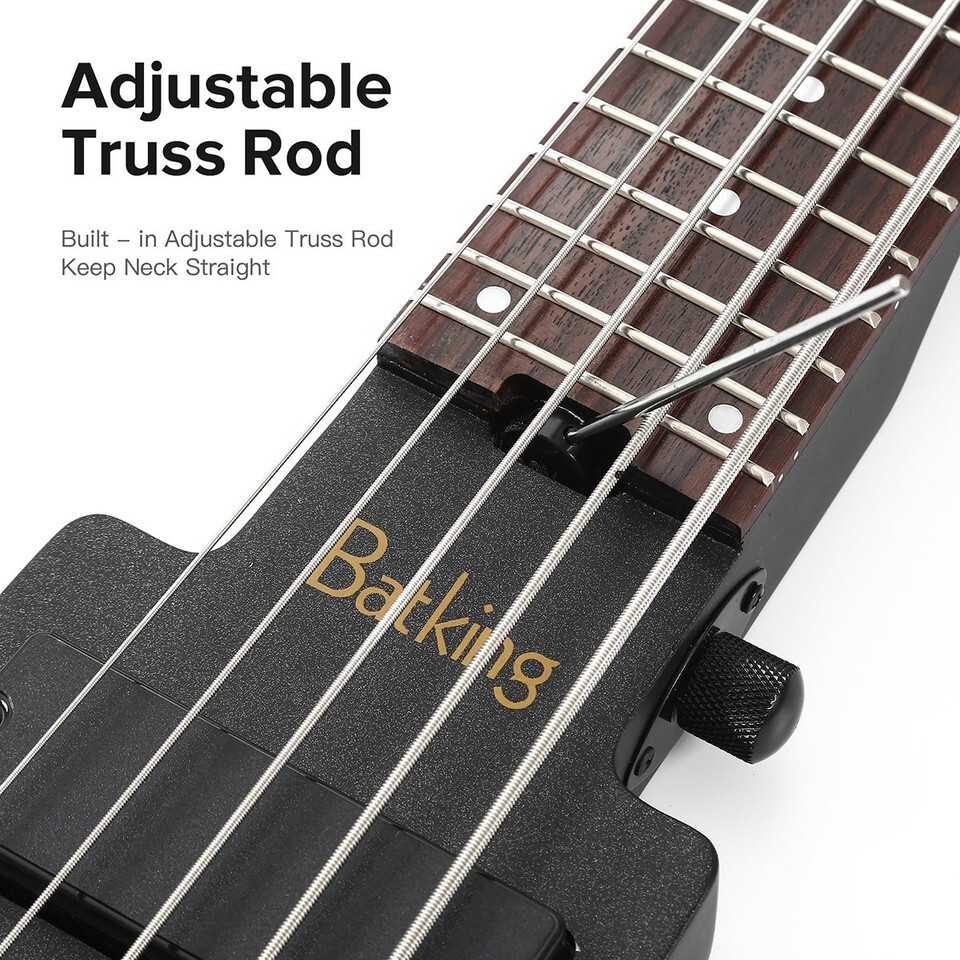 ?Adjustable Truss Rod ?The travel bass guitar neck built-in adjustable truss rod can manually adjust the neck curvature to keep the Travel Electric Bass neck straight.