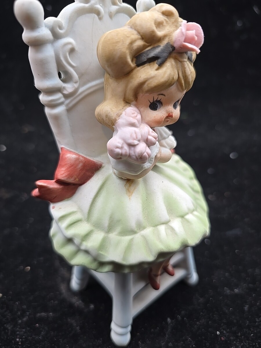 - Lefton Porcelain Girl On Chair W/Flower Bouquet Mcm Decor Collectible Numbered