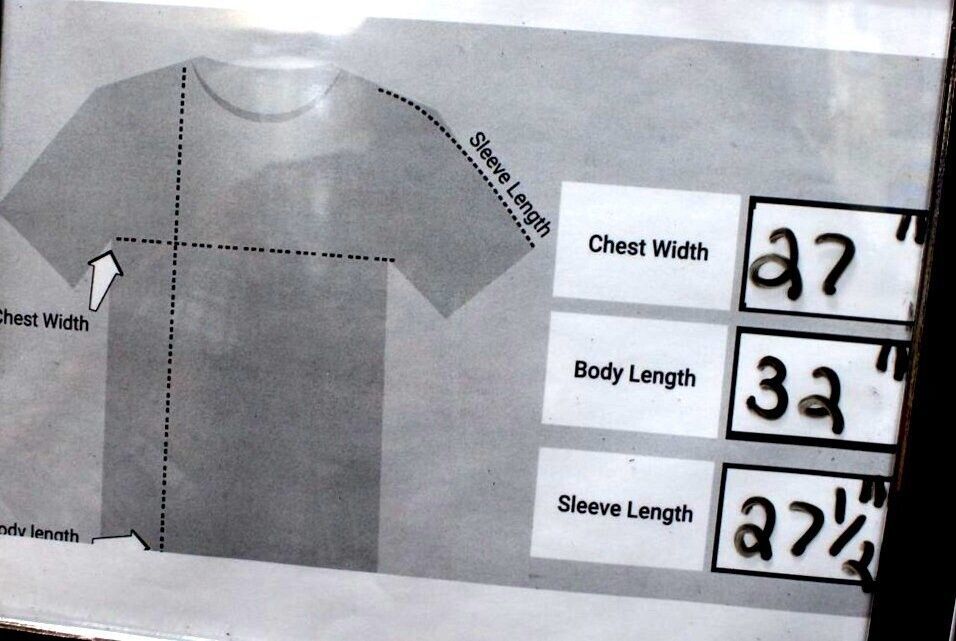 Chest width = 27 inches, Body length = 32 inches, Sleeve length = 27 inches