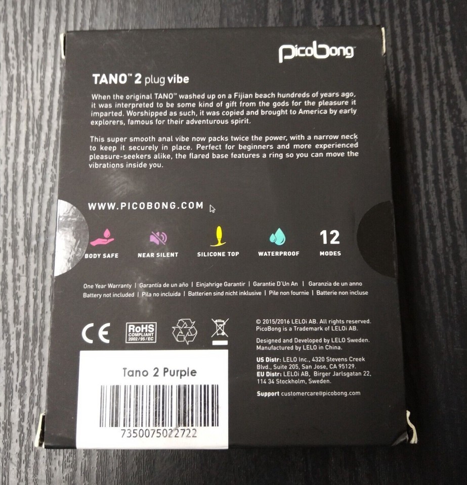 - LELO PicoBong Tano 2 Plug Vibe PURPLE New In Box