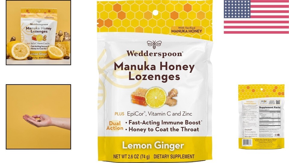 Lemon Ginger Manuka Honey Lozenges, 2.6 Oz - Scientifically-Backed Immune Boost