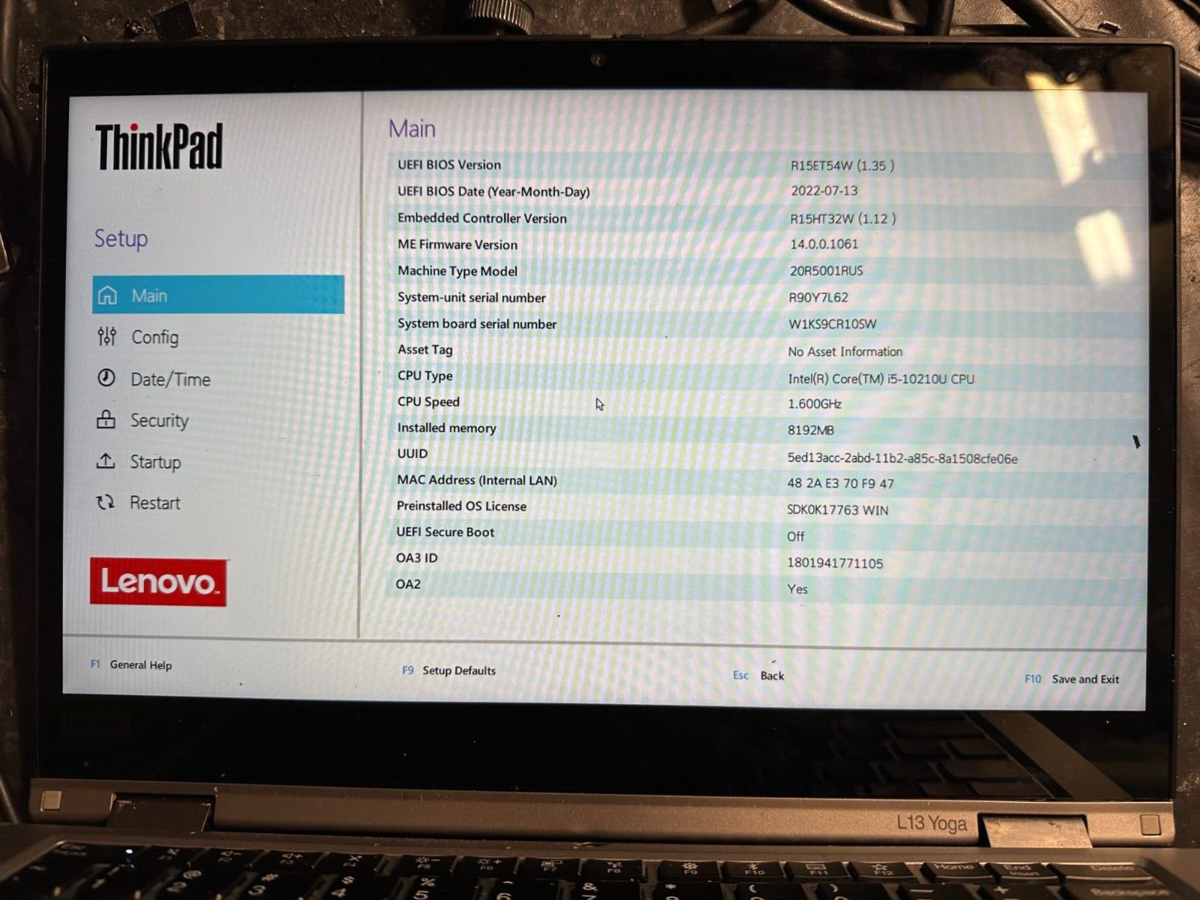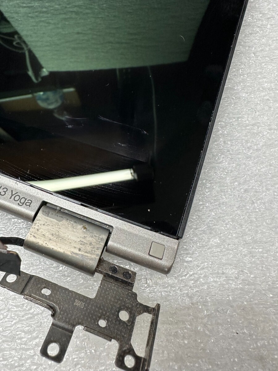 Lenovo L13 Yoga 20R5 20R6 Grey complete FHD touch screen lcd panel display read screen is just above bottom bezel but it is firmly in the lcd cover, there is a dent in lcd cover, see pic, screen works fine