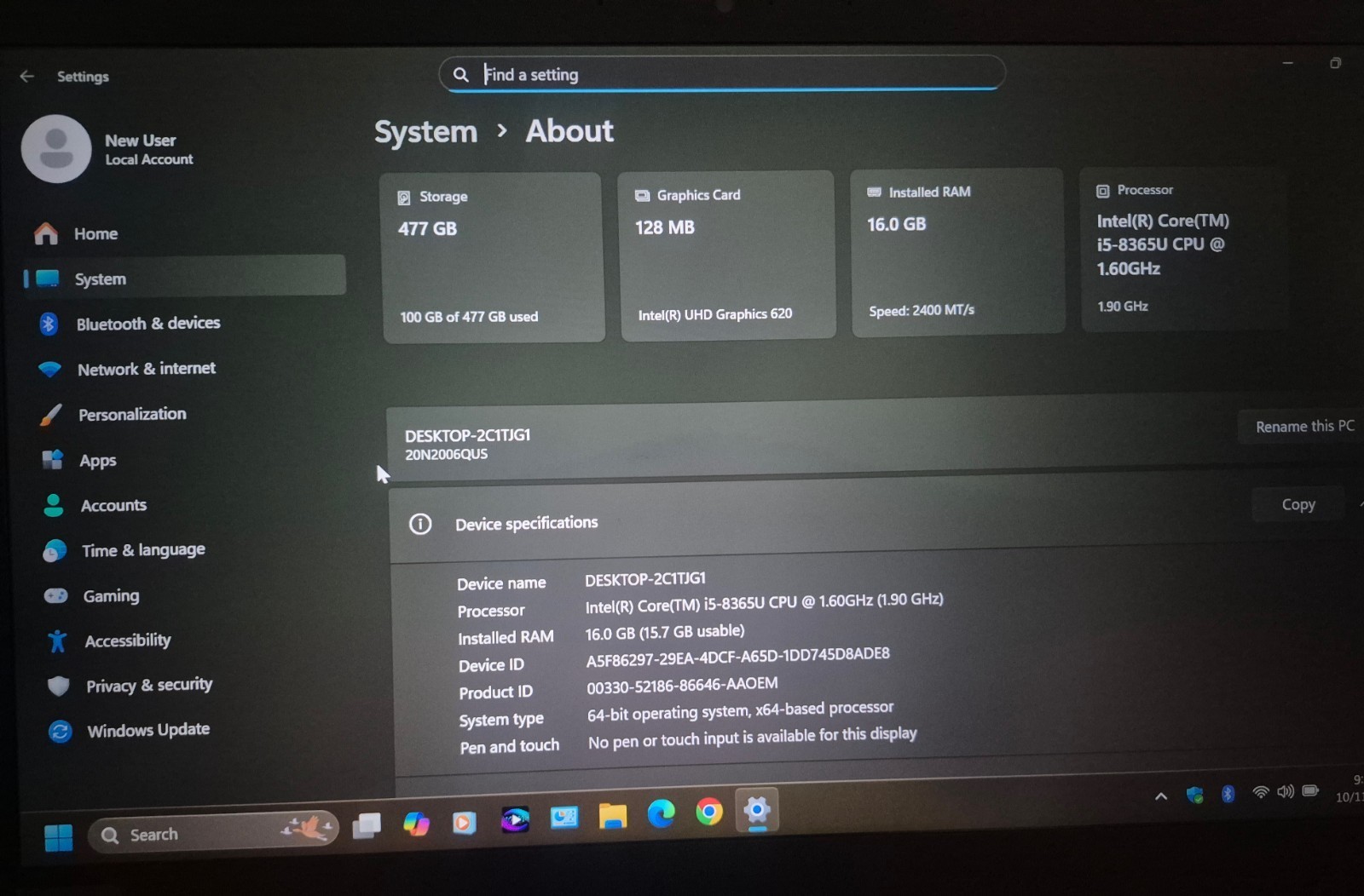 Intel Core i5 ~ 8365U @ 1.60GHz * 16GB Ram * 512GB NVMe