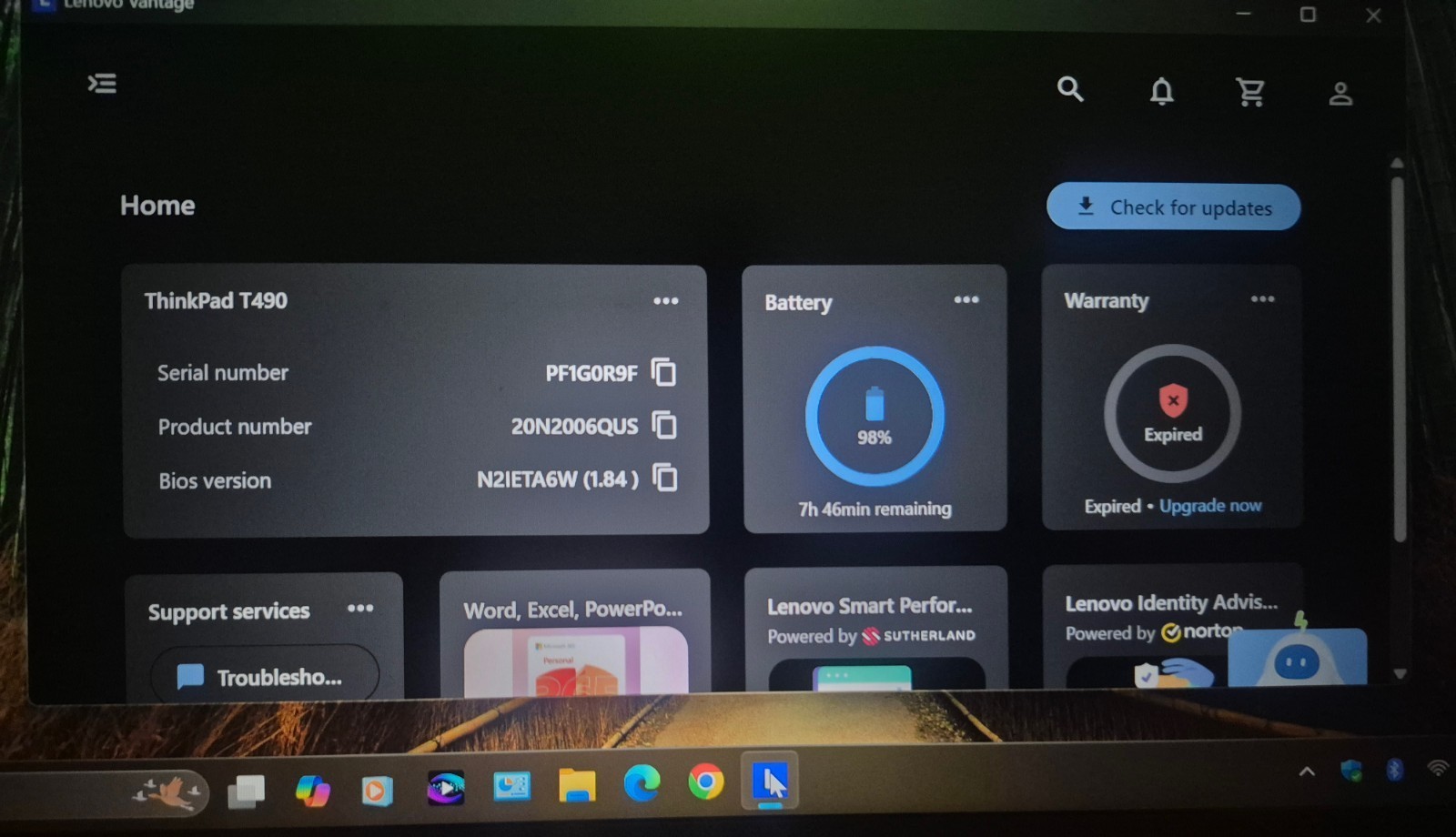 The Lenovo Vantage App is installed, was run and all Drivers, Firmware and Bios were updated