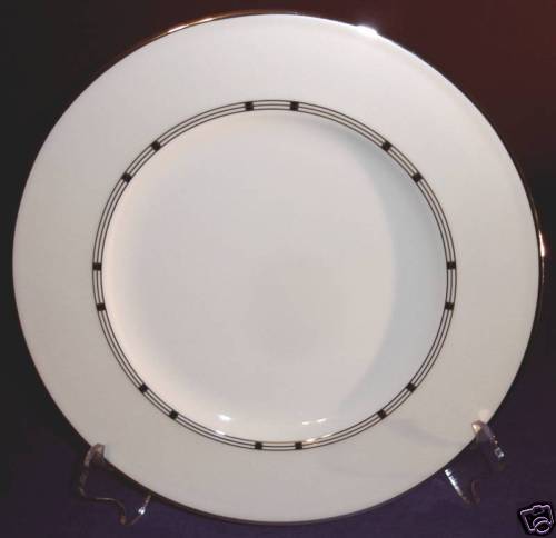 Lenox High Society Accent/Luncheon Plate White-bodied fine bone china featuring art deco inspired geometric bands in glistening platinum with ebony accents, a rim of precious platinum completes the elegant look. ? Measures approx. 9.25" in diameter ? Lenox Classics Collection ? Made in USA ? Dishwasher safe ? This generous round dish serves up hors d'oeuvres, rich desserts and delicious sides with refined style ? New in very good condition, no chips, cracks or damage, item does not come in a retail box. Please closely examine the listing and submit any questions prior to purchase. Picture may not always reflect true colors due to various lighting. /* ssgST: excluded from sampling */