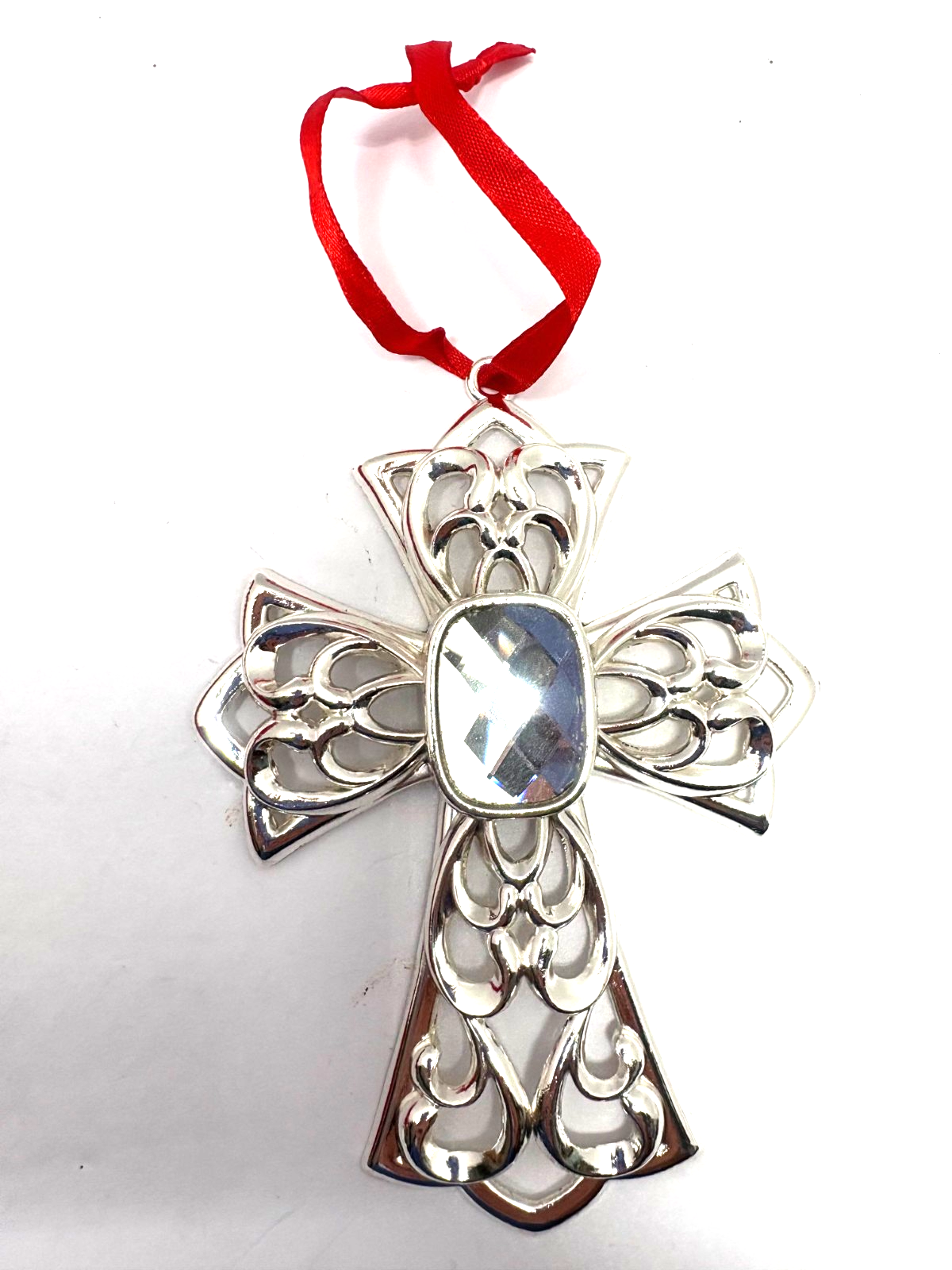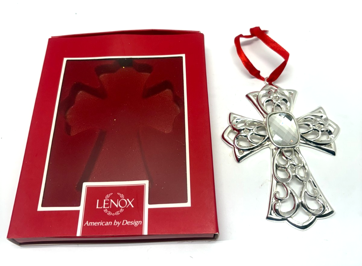 LENOX~Silver Metal GEMMED CROSS Christmas Ornament~NIB
