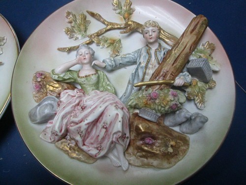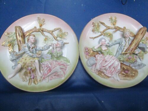 Lenwile Ardalt Japan pair of wall plaques Victorian characters couple 10"