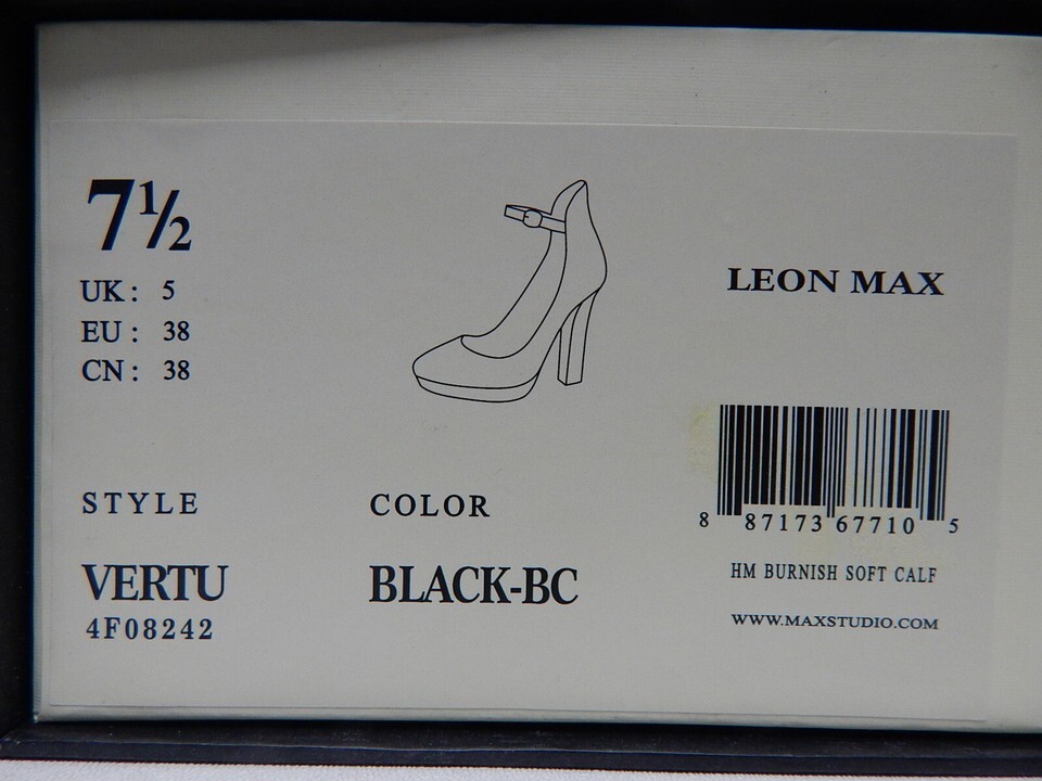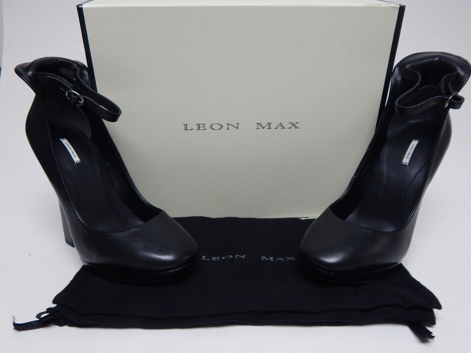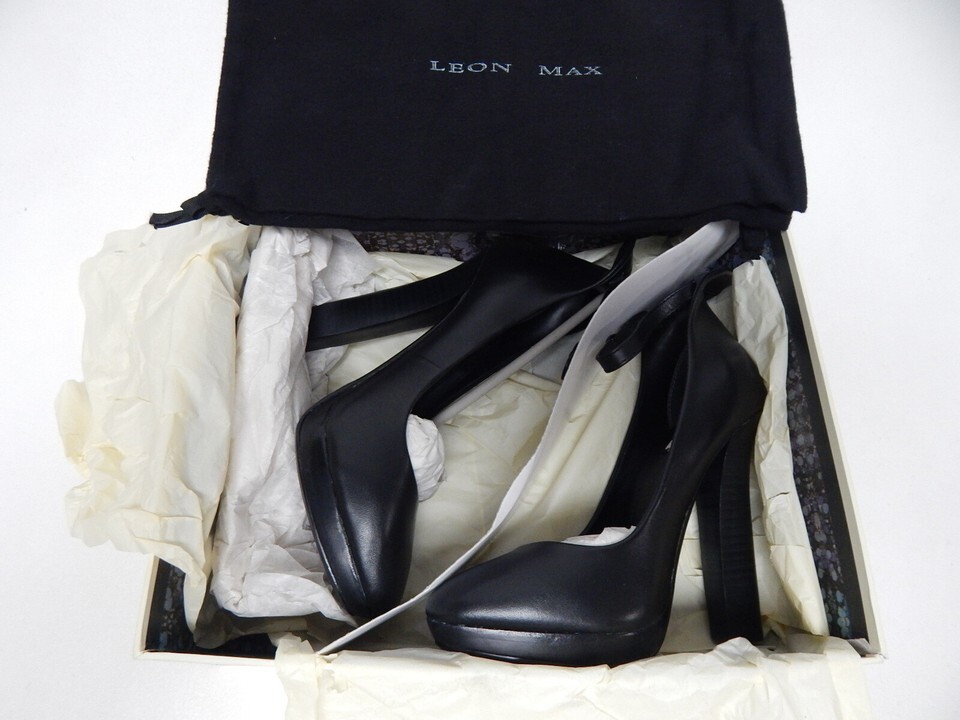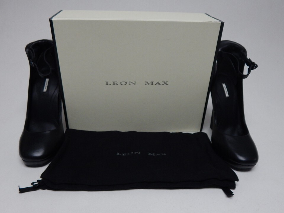 Leon Max Vertu Size US 7.5 M EU 38 Women's Leather High Heel Pumps Black 4F08242 THIS SHOE'S CONDITION: NEW WITH BOX. -Notes: IF THE ITEM IS NOT TO YOUR EXPECTATION WE OFFER A 30 DAY RETURN POLICY. ABOUT US: We specialize in footwear shoe accessories at a highly discounted price. We have a selection of new shoes, and also some displays, demos, pre-owned as well. PHOTOS: New Shoes: We usually send the the exact shoes pictured but may occasionally use our own stock images to represent several shoes. Store Displays, Demos, Pre-owned Shoes: We will send the EXACT shoes pictured here. A NOTE ABOUT OUR PRE-OWNED SHOES: We try to catch everything and describe it in the listing, but there are some things we may miss on occasion. This is why we take several pics of all pre-owned shoes from every angle possible so you as the buyer see what you will be getting. Also, because we are re-sellers we do not know the exact mileage of the shoes. SHIPPING: Shoes are in stock and ready to ship. We have a 1 day handling time but will usually ship same day if you purchase before 3PM Central Standard Time Need the item faster? We offer priority, expedited, and express one- day shipping on nearly all of our items We will combine shipping for expedited and one day deliveries. International Buyers Please Note: Import duties, taxes, and charges are not included in the item price or shipping cost. These charges are the buyer's responsibility. Please check with your country's customs office to determine what these additional costs will be prior to bidding or buying. QUESTIONS? Message us- we are usually very fast at responding! Listing and template services provided by inkFrog