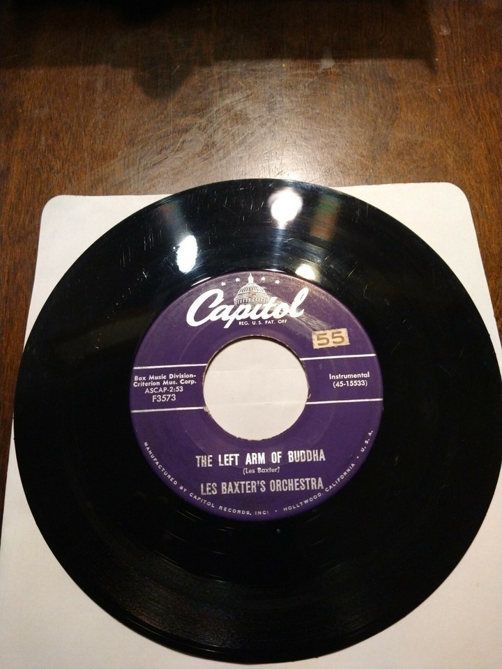 Les Baxter's Orchestra The Left Arm Of Buddha Buenos Aires 7" Vinyl 45 Capitol. Condition is "Used". Shipped with USPS First Class.