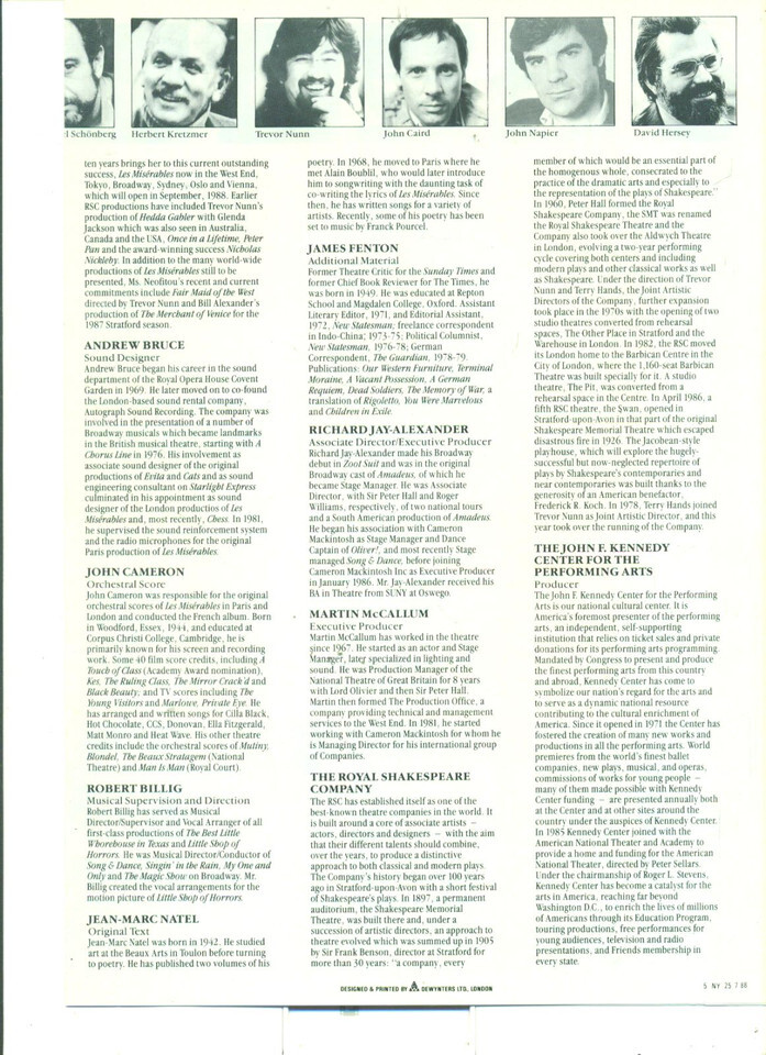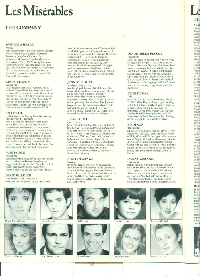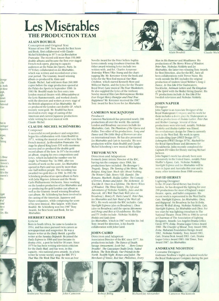 LES MISERABLES Souvenir Theatre Brochure and Synopsis