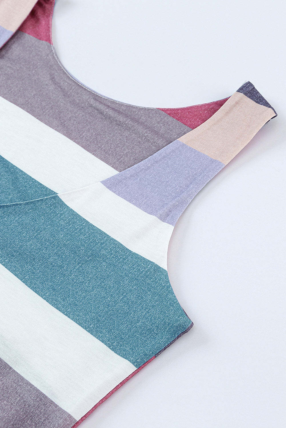 Leslie Stripe Print Slit Maxi Tank Top Dress