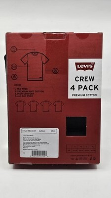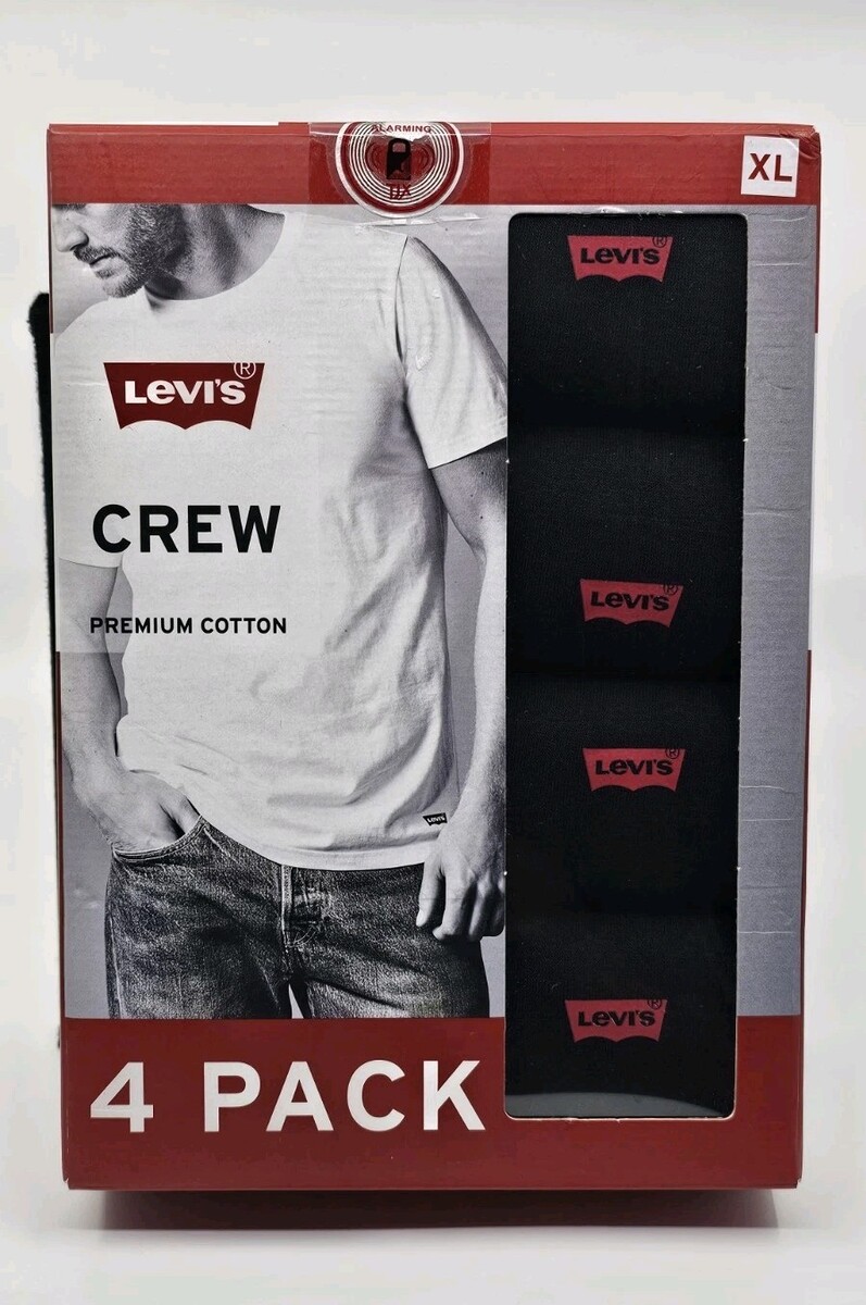 Levis Men's Size XL 4 Pack Black Crew Neck Premium Cotton Logo T Shirt Set New