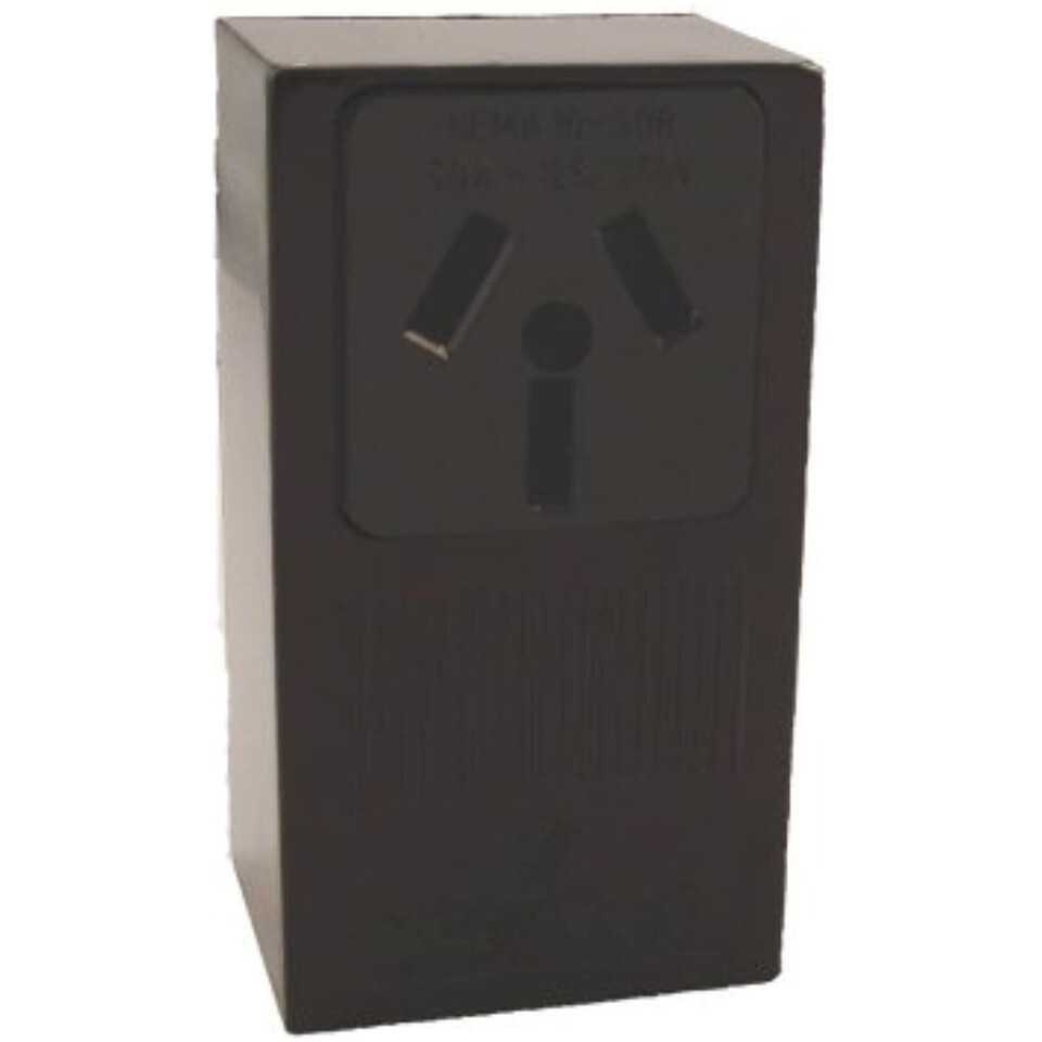 Product Description Outfit your dryer with top-notch connections with a Single-Surface Range Receptacle. The 3-wire, 50 Amp receptacle is UL listed and allows for robust, reliable range performance. From the Manufacturer Built of durable thermoplastic, Leviton Power Receptacles ? come equipped with heavy-gauge, double-wire copper alloy contacts. To ensure correct and speedy wiring, terminals have ID markings. 50 Amp, 125/250 Volt, NEMA 10-50R, 3P, 3W, Surface Mounting Receptacle, Straight Blade, Industrial Grade, Non-Grounding, Side Wired, Steel Strap, Black.