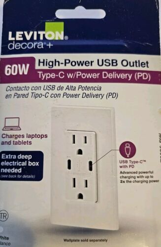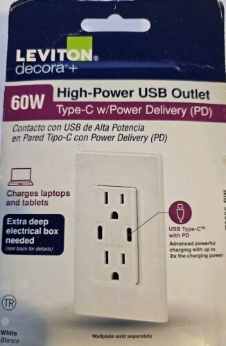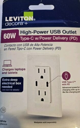 - Leviton Decora 15 Amp Tamper Resistant Duplex Outlet with 60W USB-C Power Delive