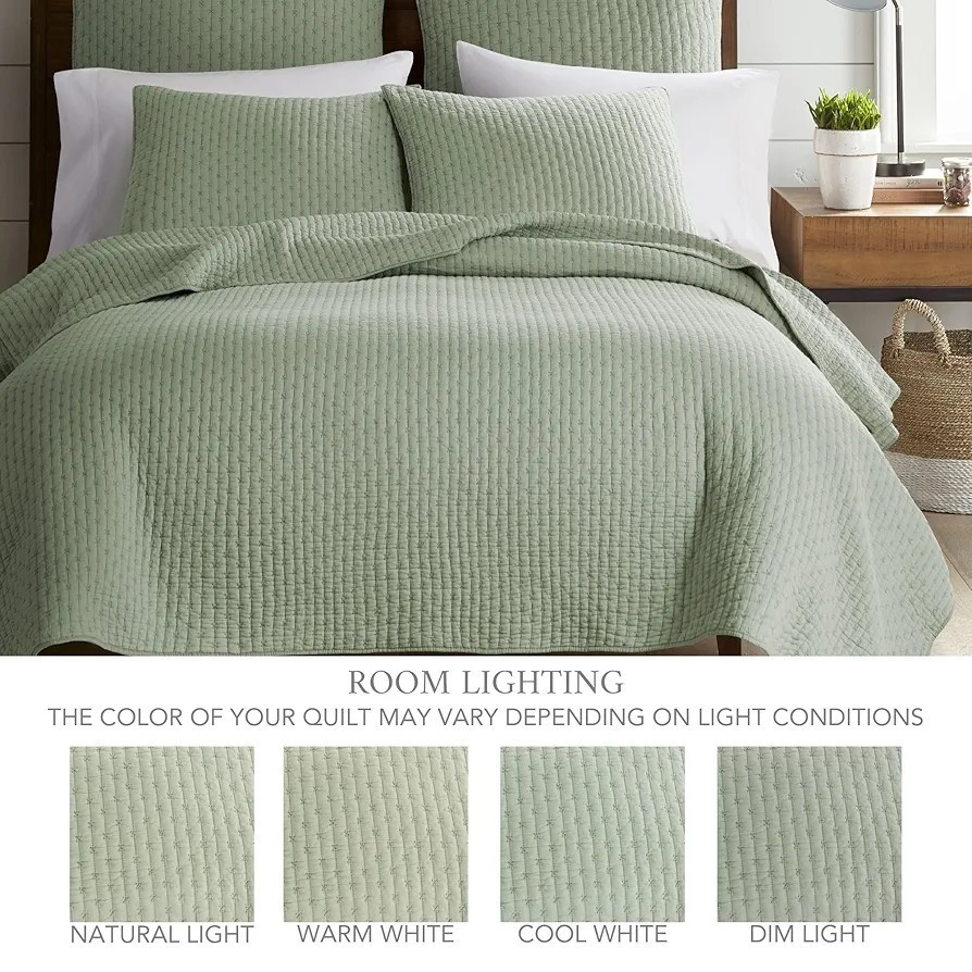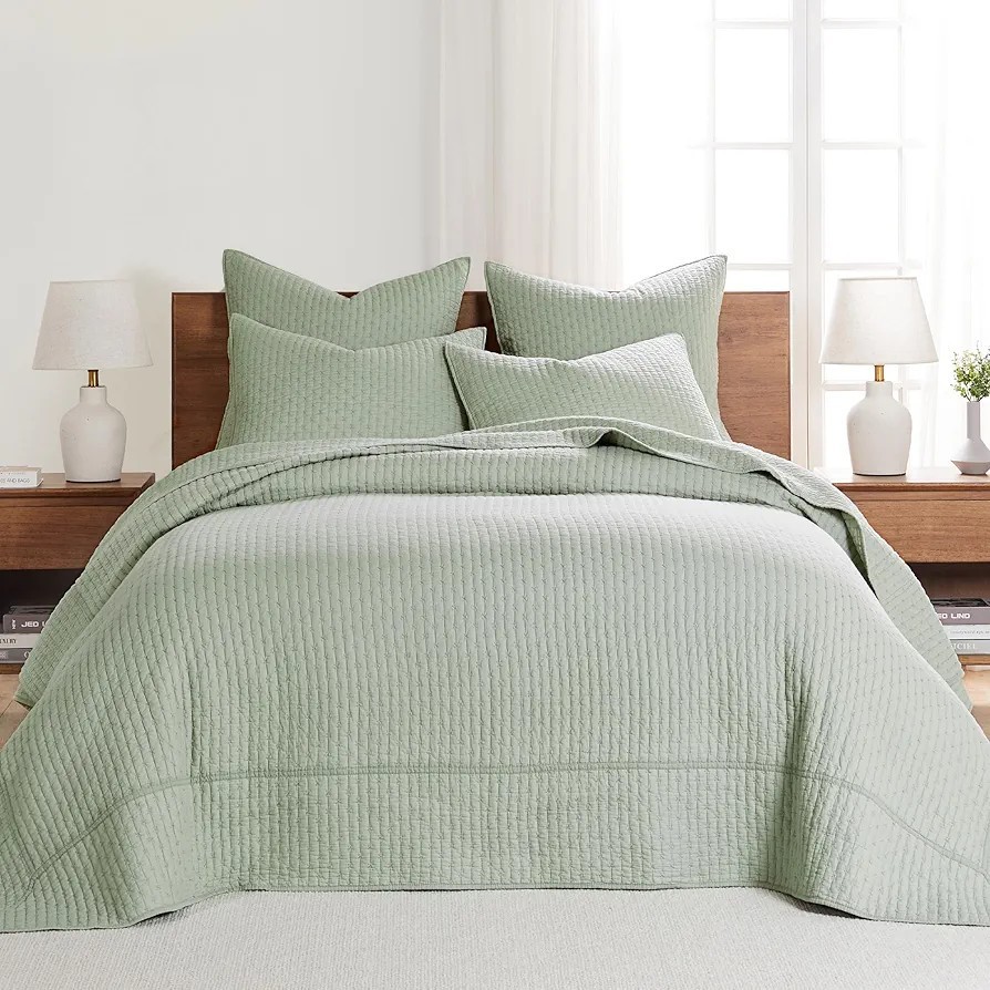 - Levtex Home Cross Stitch Desert Sage Bedspread Set Queen Quilted with 2 Shams