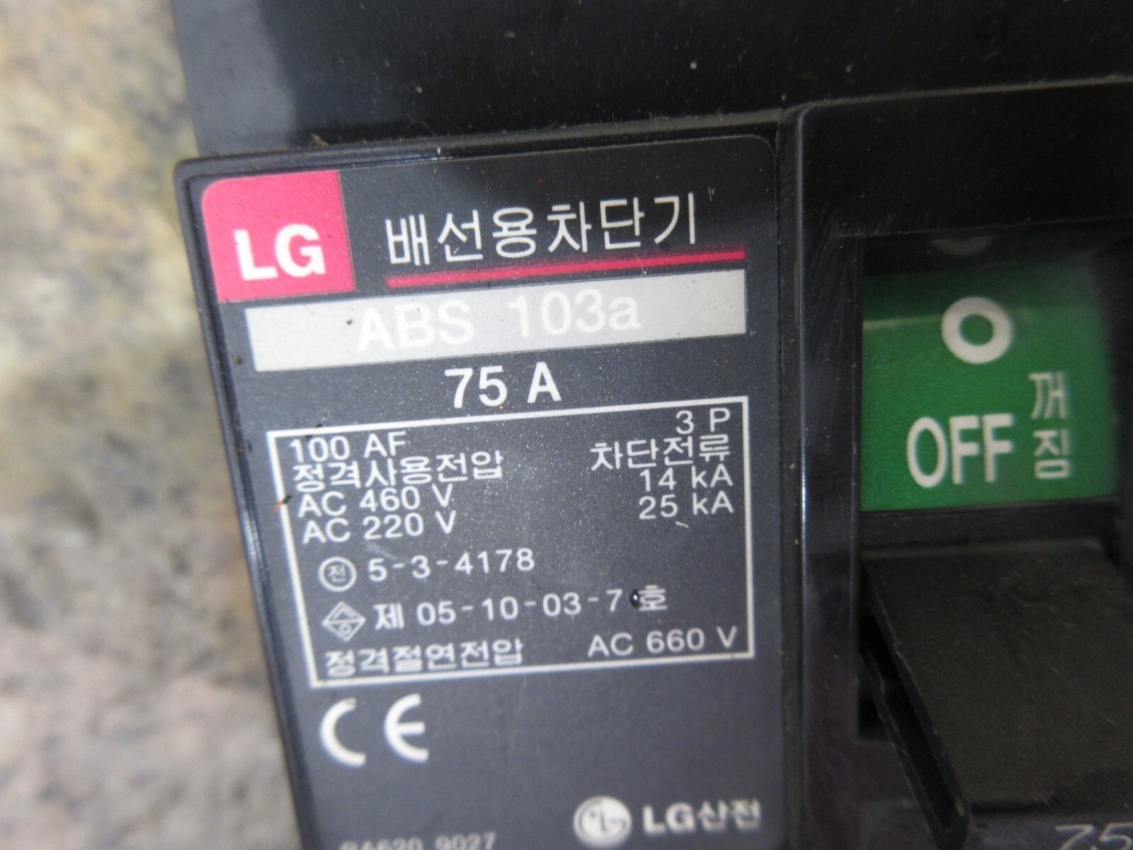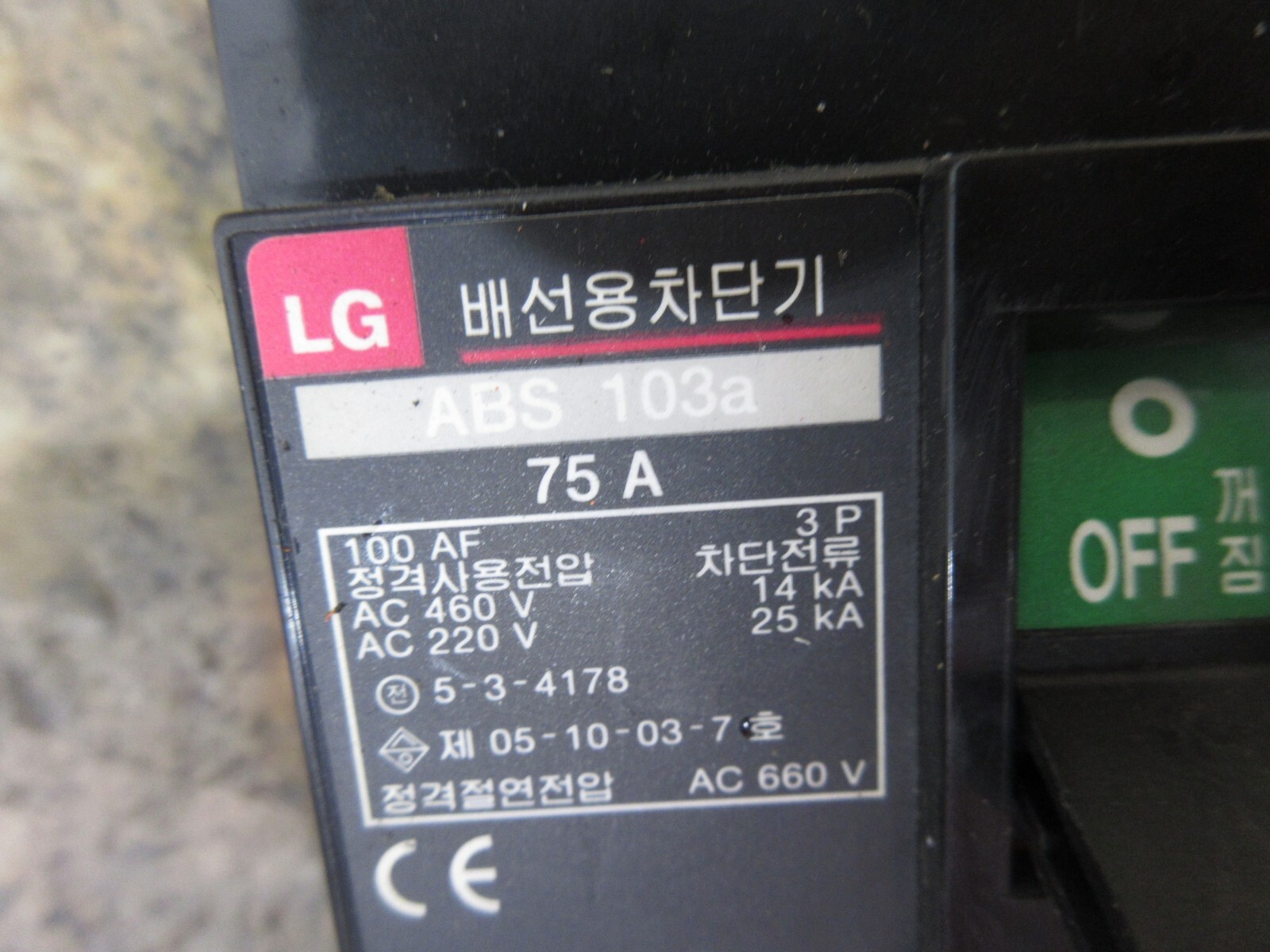 - LG MOTOR STARTER ABS 103A 75A 100AF 5-3-4178 05-10-03-7 AC 660V BREAKER