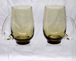 Set of two Libbey Tawny Accents beverage glasses, each measuring approximately 5 inches tall. This aesthetically pleasing pattern was produced by the Libbey Glass Company around 1972, featuring just a hint of smokey brown color and classic mid-century styling. These sturdy, American-made glasses are ideal for serving beer, iced tea or cocktails. The muted color design adds visual interest and a "homey" feel, while offering a comfortable grip.