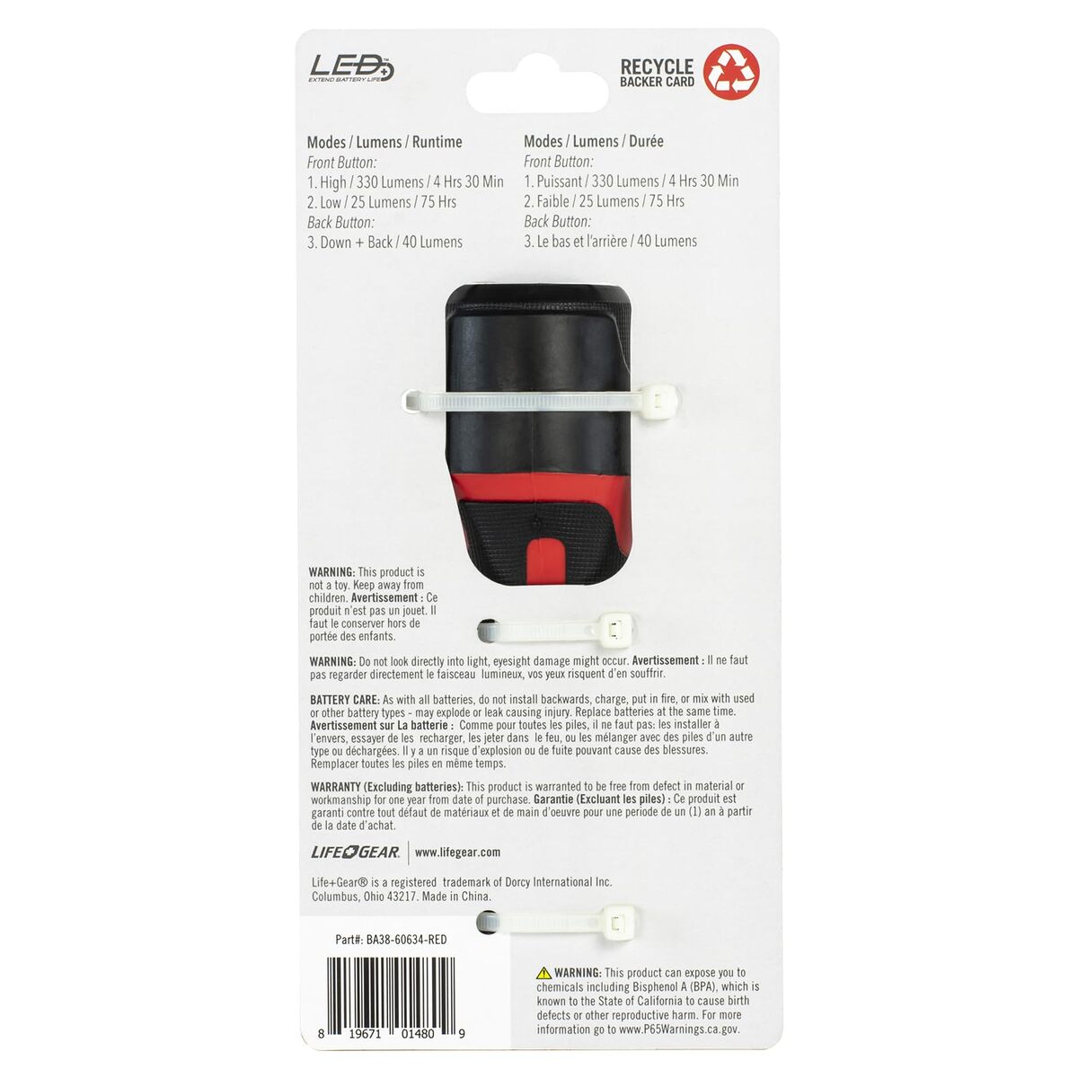 Life Gear Waterproof Flashlight with 3 Direction Path Light for Safe Walking at
