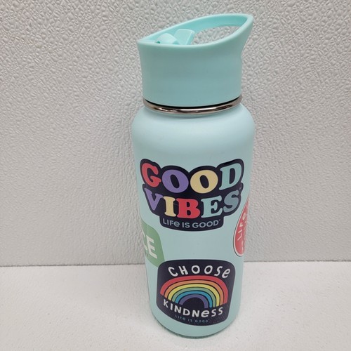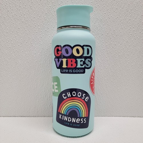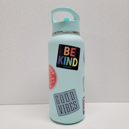 Life Is Good 32 oz Wide Mouth Stainless Steel Water Bottle Alpine Teal Stickers
