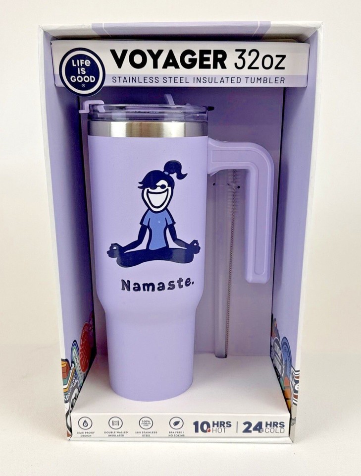 - Life is Good Voyager 32 oz Namaste Tumbler Insulated Stainless Steel. Purple