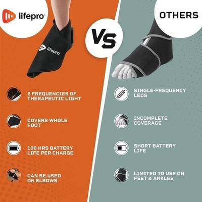 LifePro Red Light Therapy for Feet Ankles ? Cordless Glove Foot Wrap with... PRODUCT DESCRIPTION SPEED UP YOUR RECOVERY - Tap into the power of red light therapy at home and improve your foot therapy healing time with the 60 infrared therapy LEDs built into our comfortable durable foot wraps! RELIEVE YOUR JOINT MUSCLE PAIN - Enjoy ankle, elbow achy feet relief with infrared light therapy for pain. Great for shoe pain relief, heel pain relief products even relieve persistent pains! REENERGIZE YOUR FEET AFTER LONG DAYS - 660 nm therapy red light LEDs provide faster wound healing, complementing the 850 nm pain relief frequencies of AllevaSole near infrared light therapy devices. IMPROVE YOUR BLOOD CIRCULATION - Mens foot care products utilizing therapeutic light frequencies for healing feet stimulate optimal circulation, helping your feet naturally maintain their wellness. TAKE IT WITH YOU WHEREEVER YOU GO - Get over 100 hrs of battery life from your red light therapy light foot brace in a single charge, and take your foot health sessions anywhere you go! Product description Copyright All rights reserved.