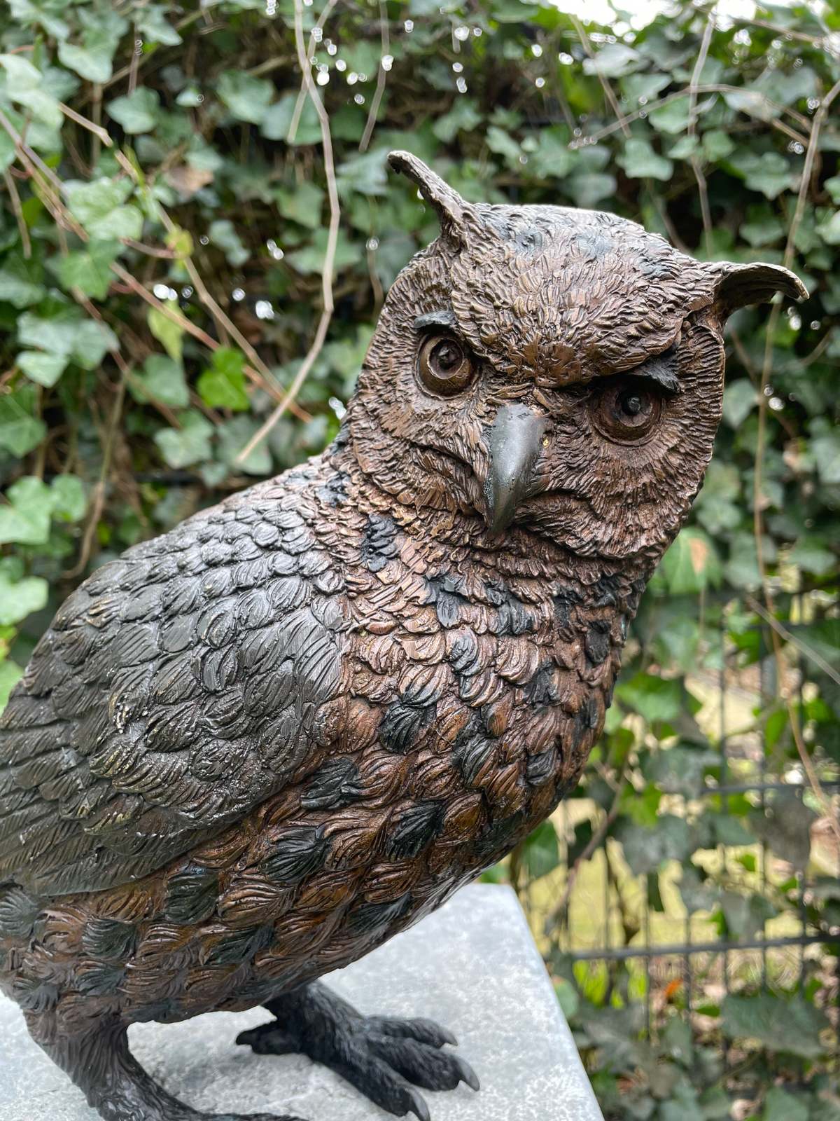 - Lifelike bronze eagle owl sculpture – 28x15x30cm - 3.9Kg
