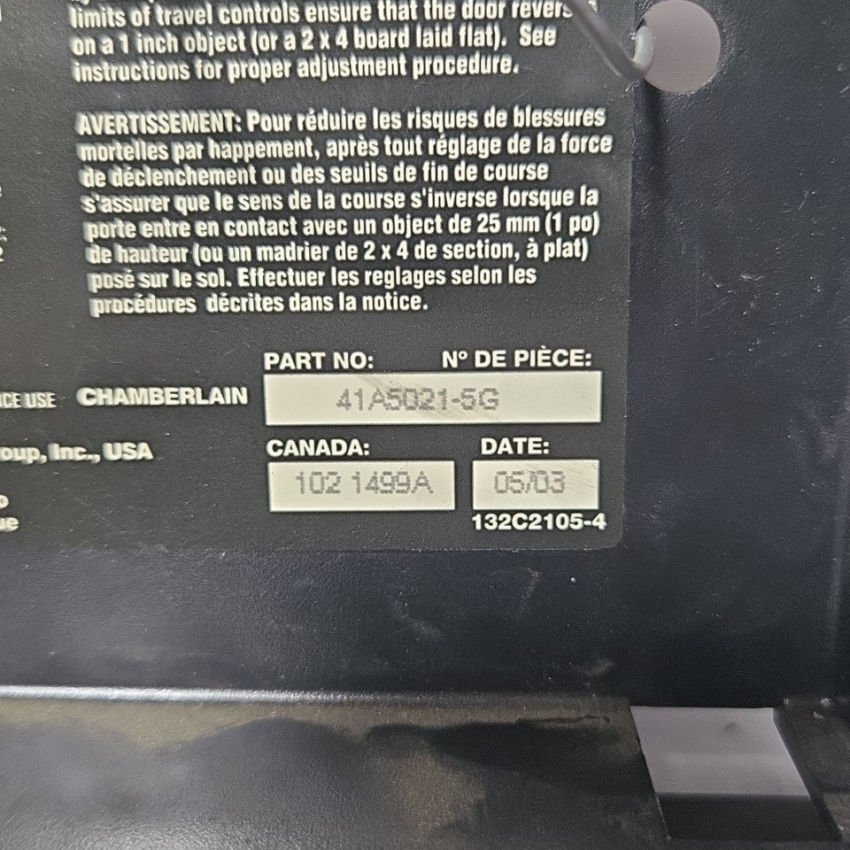 Liftmaster Chamberlain Circuit Board End Panel Red Learn Button 41A5021-5 The board you receive could have a different letter at the end than the one pictured, but that's just the year designation and doesn't change the function of the board. Interchanges include.... - 41A5021-D - 41A5021-5A - 41A5021-5B - 41A5021-5C - 41A5021-5D - 41A5021-5E - 41A5021-5F - 41A5021-5G - 41A5021-5H - 41A5021-5I - 41A5021-5M The part you receive WILL NOT be the exact one pictured, however it will be the same part number OR AN INTERCHANGE listed above, in similar condition. Items are used and may have paint, nicks, scratches, missing stickers, fading but they are GUARANTEED to work