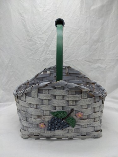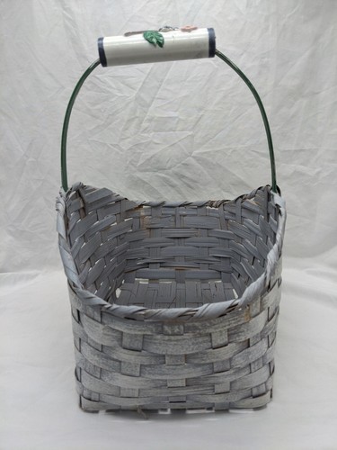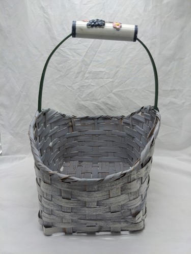 Light Blue Gray Wicker Grape Easter Basket 9" X 7" X 13"