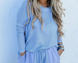 Light Blue Plus Size Ribbed Long Sleeve Top and Drawstring Shorts Set
