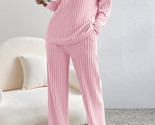 - Light Pink Ribbed Knit V Neck Slouchy Two-piece Outfit