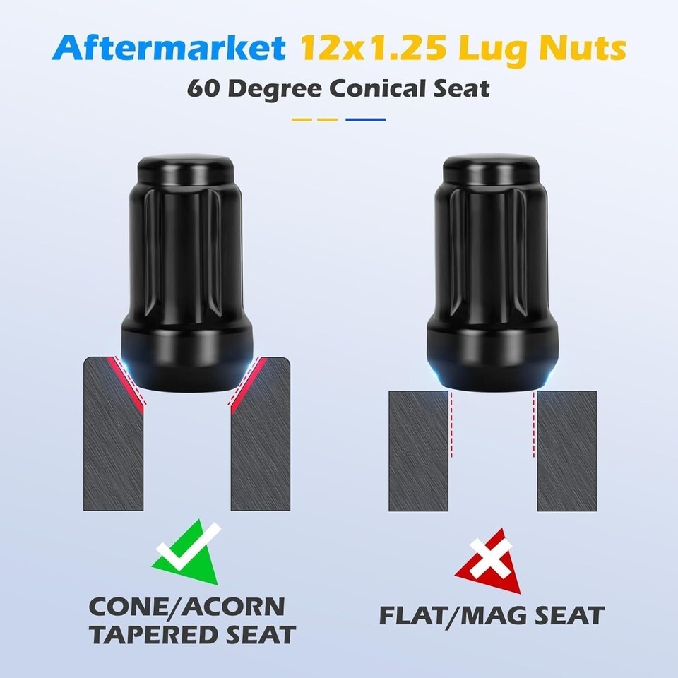 Fitment: Compatible with vehicles requiring a 12x1.25 thread and a conical 60-degree seat, suitable for most aftermarket wheels.