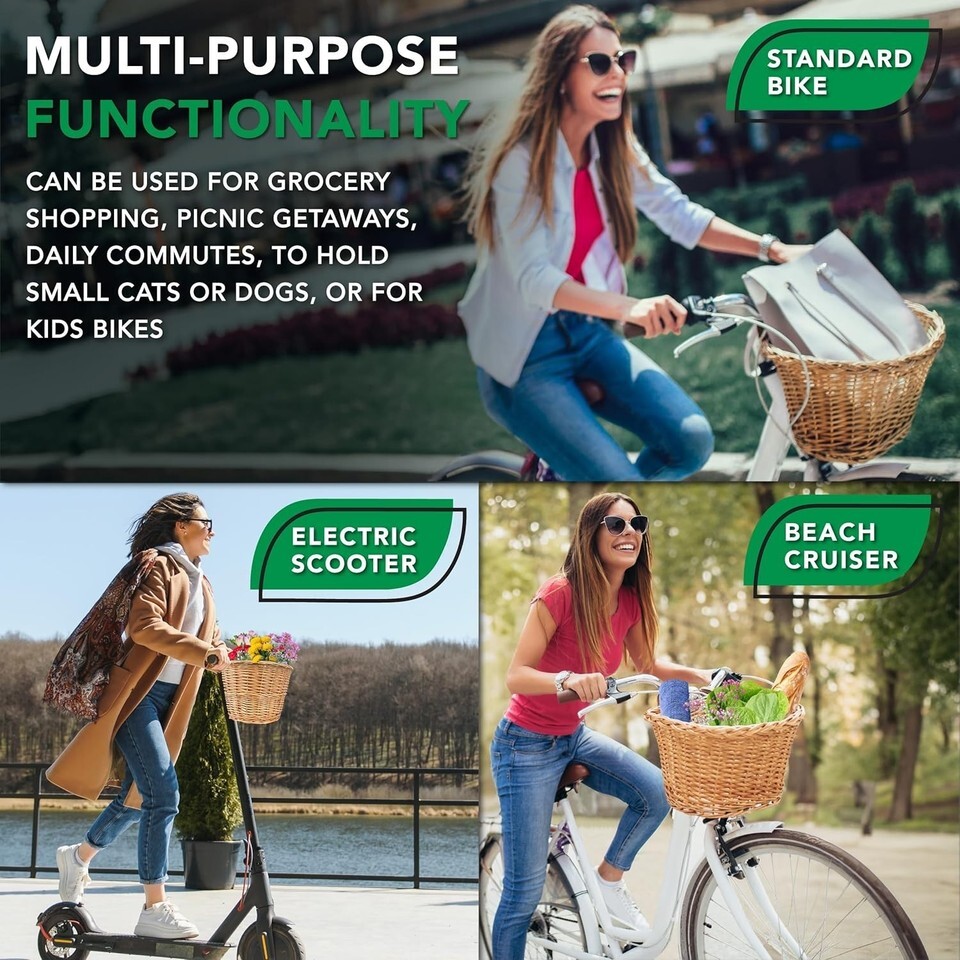 - Lightweight Weather-Resistant Wicker Bike Basket - Versatile for All Riders