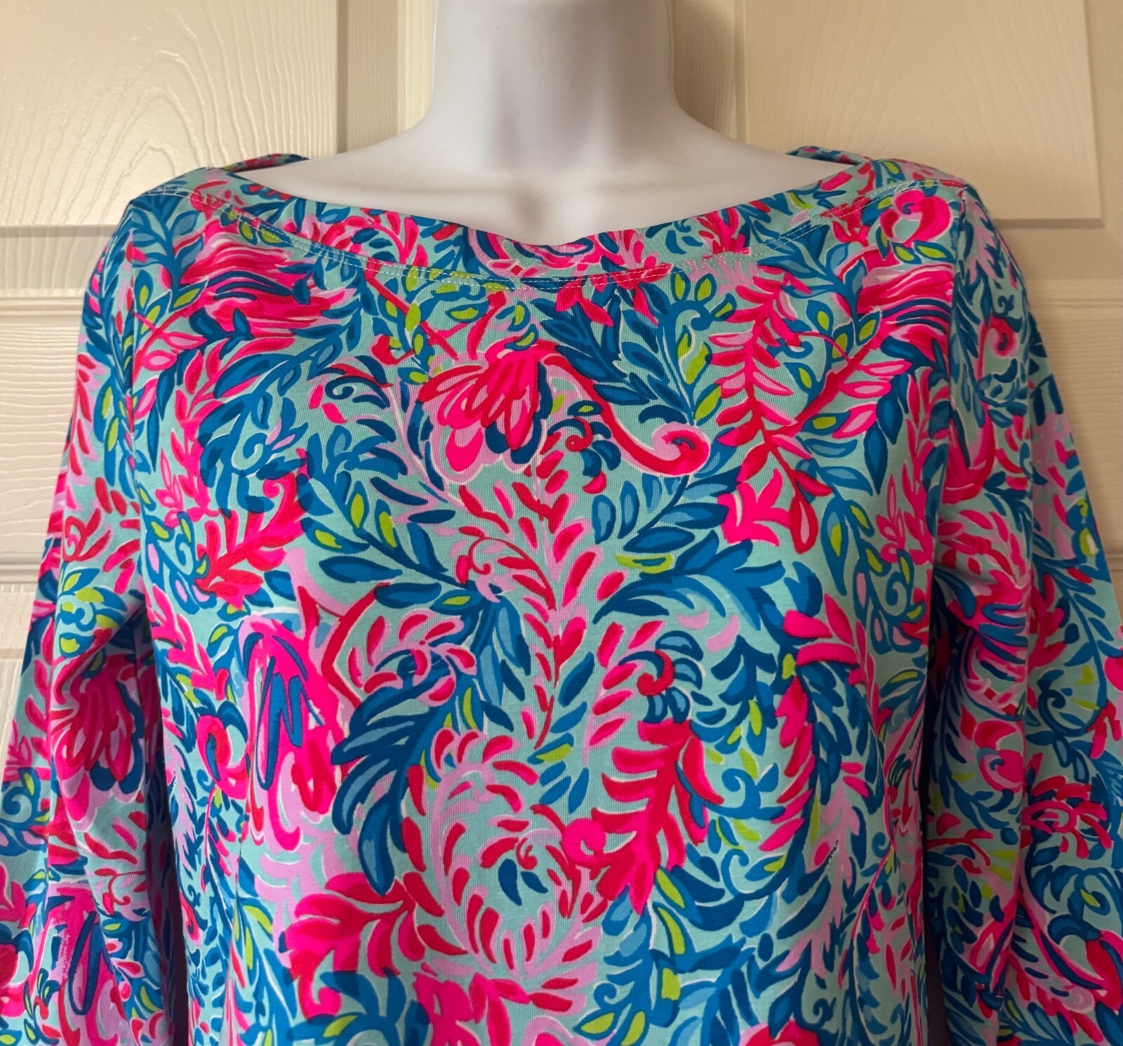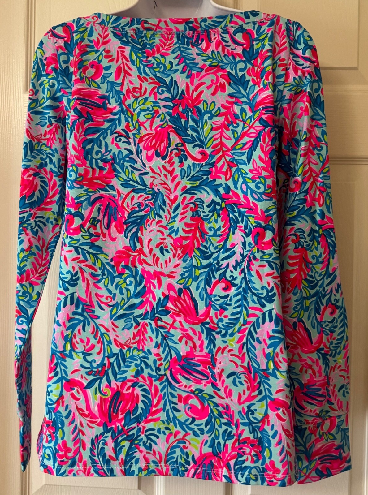 - Lilly Pulitzer Aleah Top Long Sleeve Surf Blue Flim Flam Size S NWOT