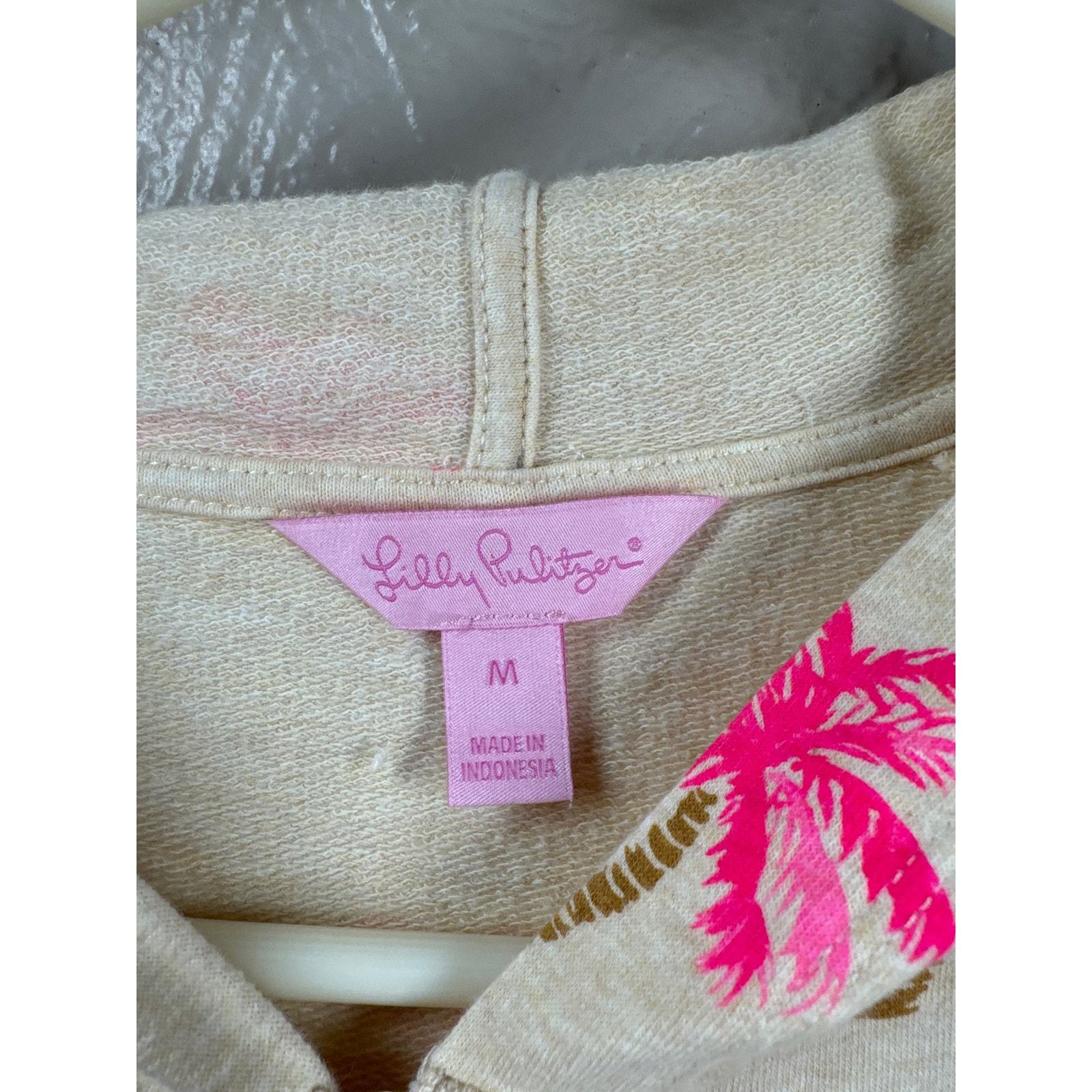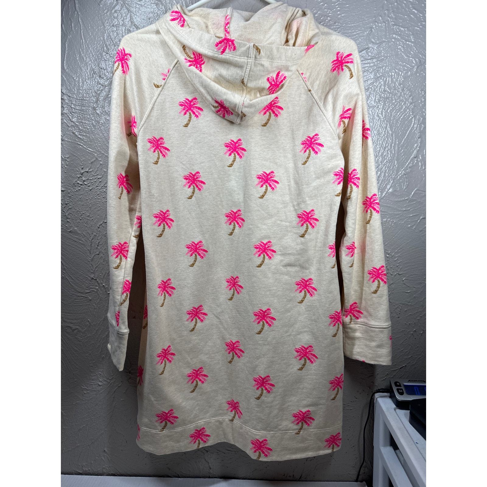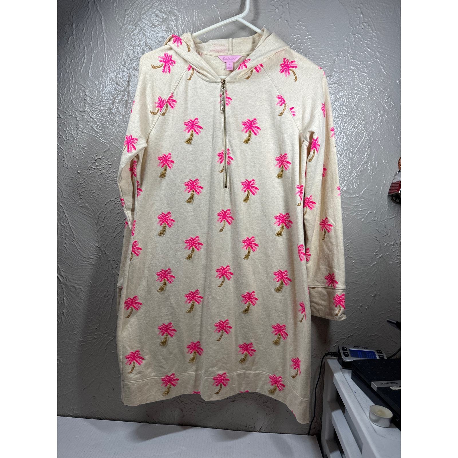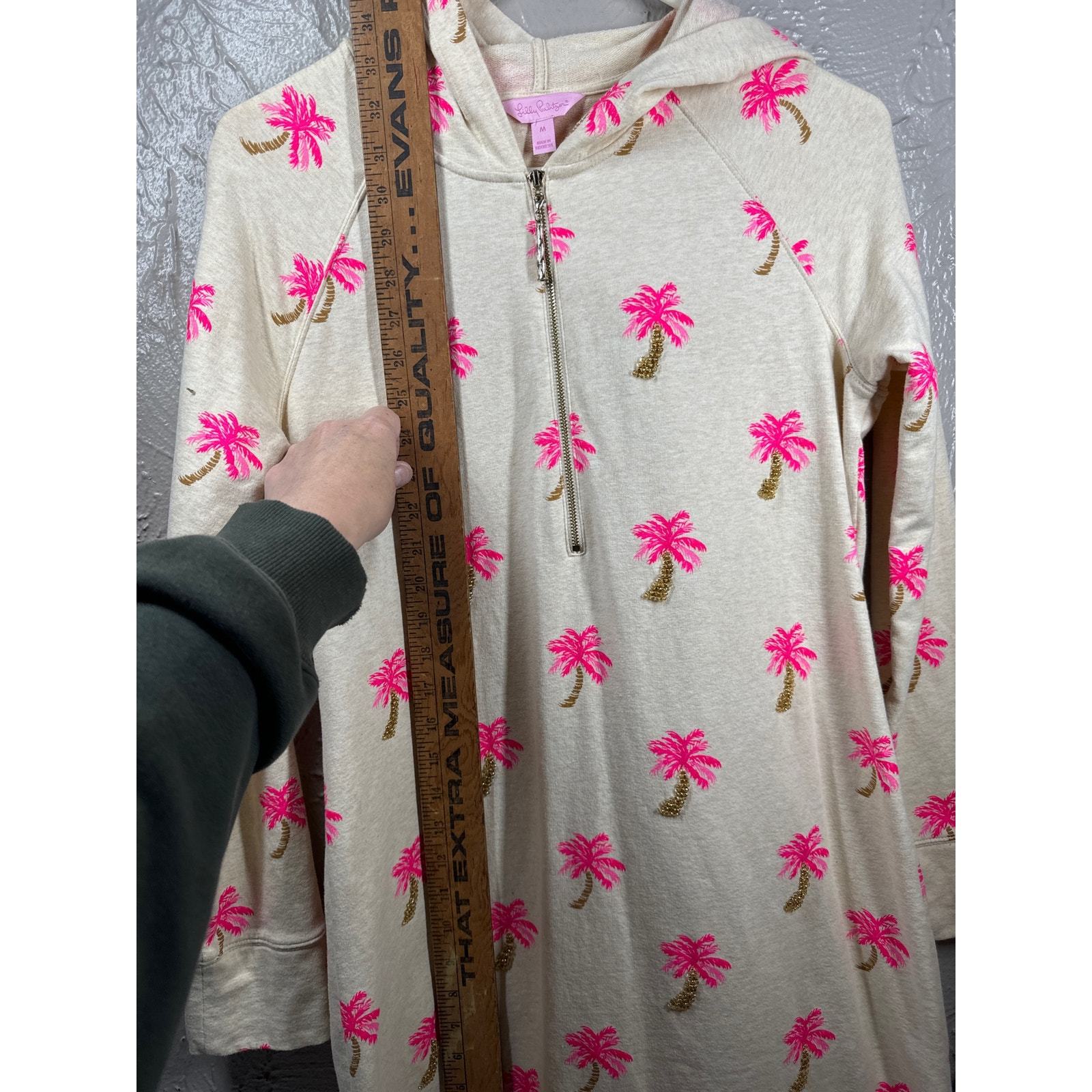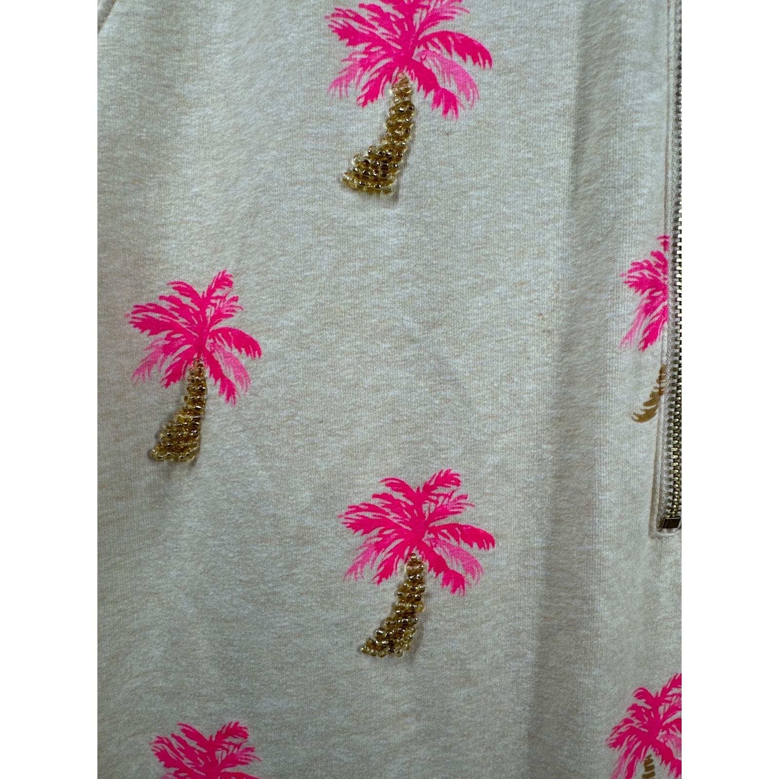 - Lilly Pulitzer Beige & Pink Beaded Palm Tree Print Skipper Hoodie Dress Size M