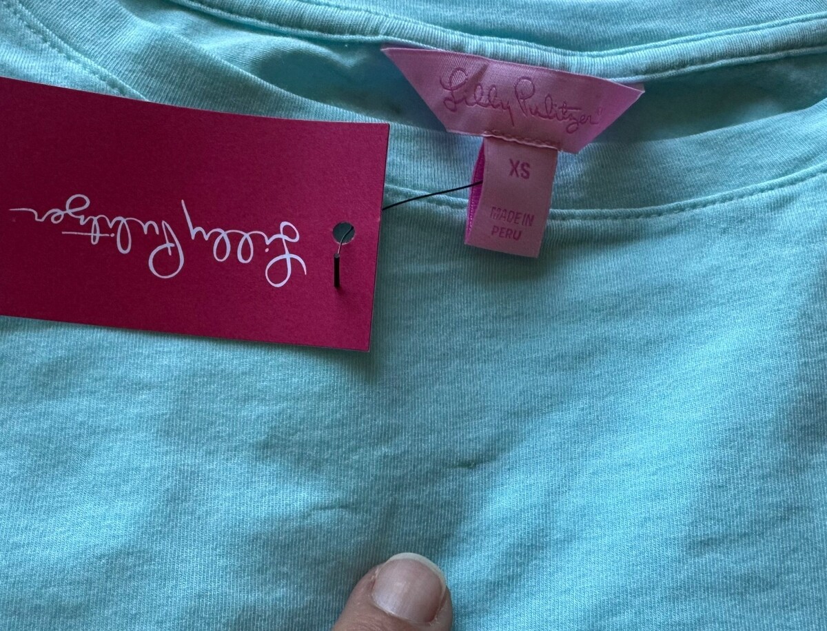 - Lilly Pulitzer Finn Top Turquoise Stripes Mermaid Cotton Blend Size XS NWOT