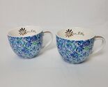 Lily Pulitzer Gold Handle Hidden Lion Blue Floral 12 OZ Coffee Mugs Set of 2 Tea