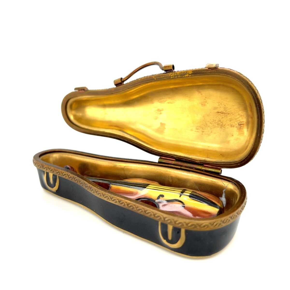 Limoges Violin Figure Black Case Collectible French Porcelain Piece Peint Main