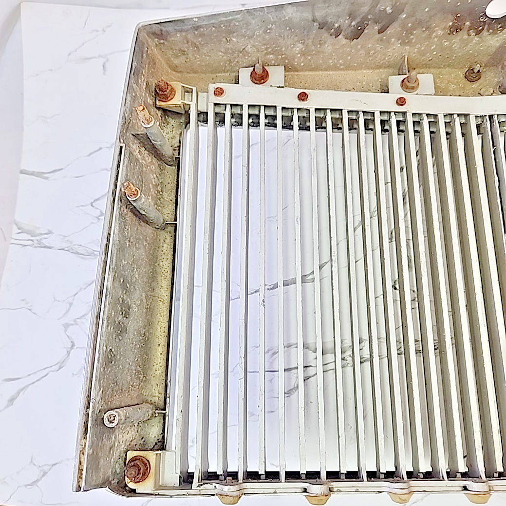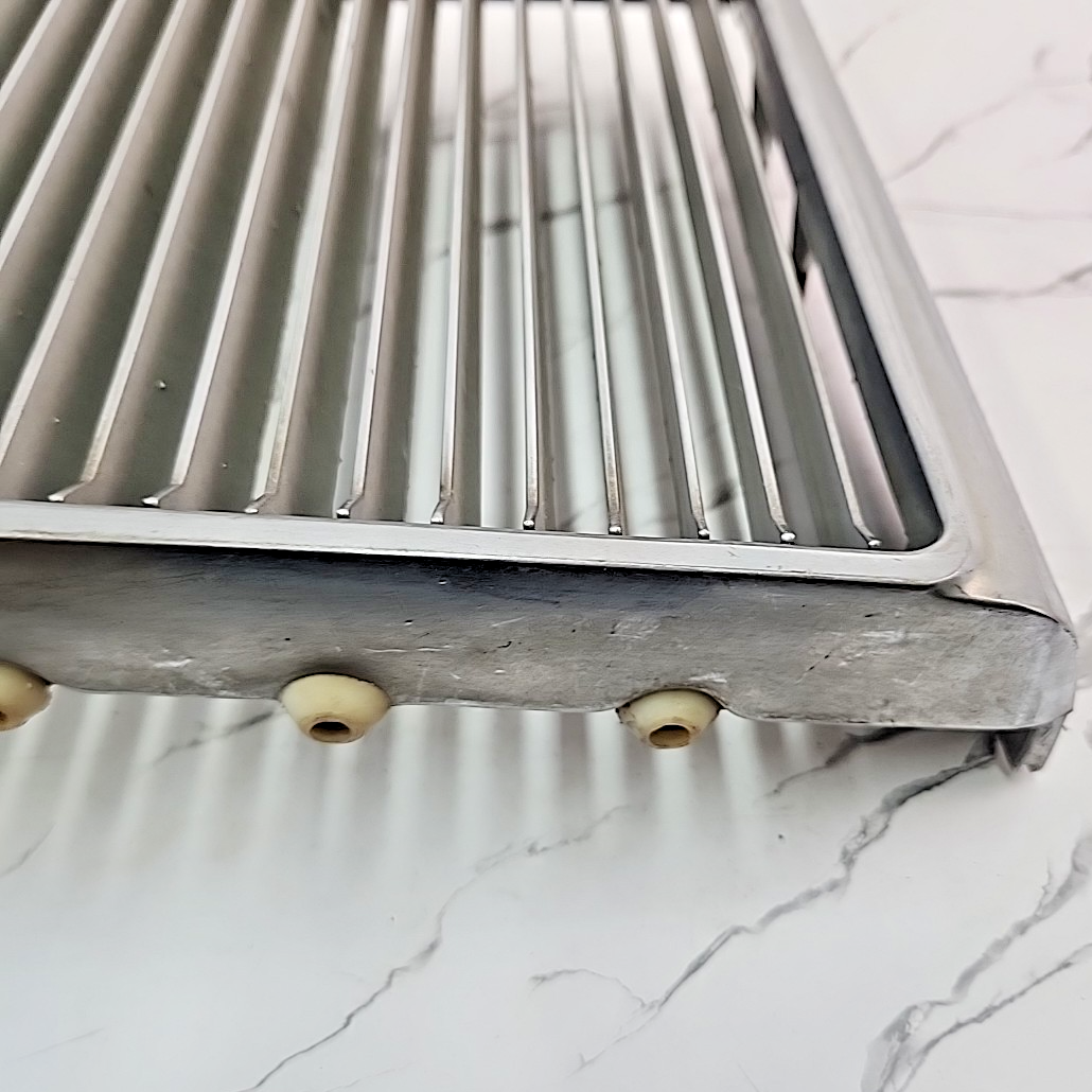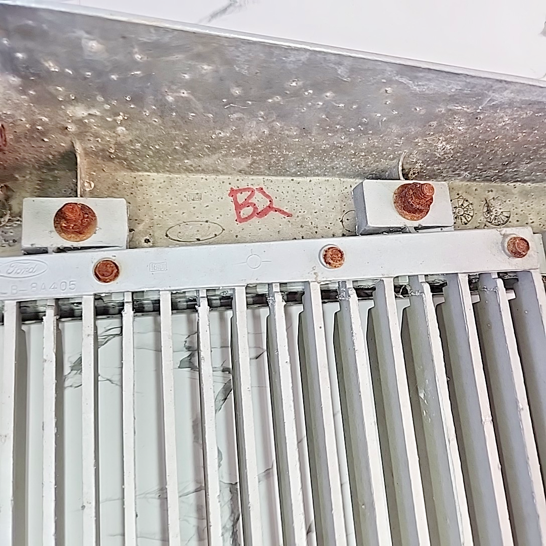 Exact item is shown. Minor pitting on the chrome. This is missing a few of the mounting studs and is listed as-is due to needed repair. Includes the red front emblem shown. Item dimensions approximately 24 x 15 x 5 inches, weight 21 lbs. Made in USA. Please review our business policies in our store for information regarding returns, shipping and warranties.
