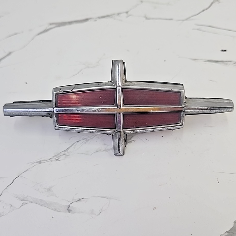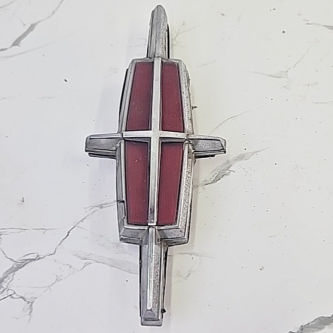 The Lincoln D5VY6043516A 1975-1978 Trunk Lock Flip Cover Ornament Emblem is a vintage part made of durable chrome material with a red color finish. This emblem, crafted in the United States by the Lincoln brand, is designed for the rear, center placement on vehicles. With its unique design and vintage appeal, this trunk lock cover ornament is a perfect addition to car and truck parts and accessories for Lincoln enthusiasts looking to enhance the exterior of their vehicle.