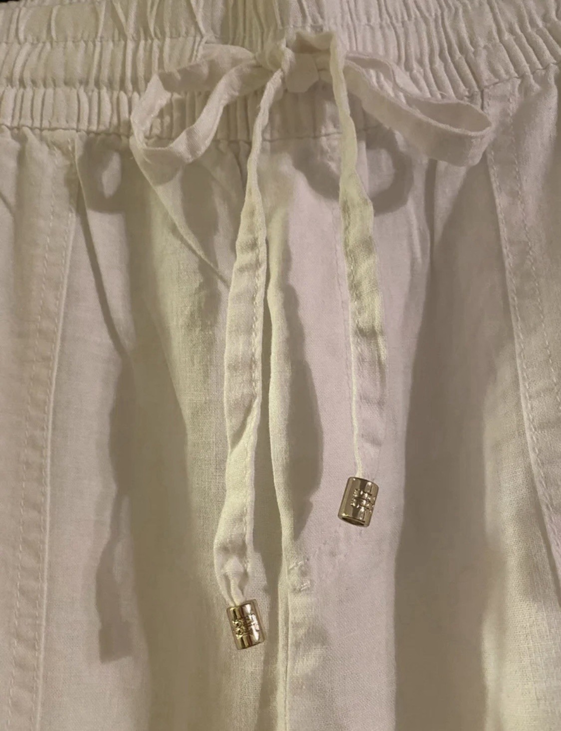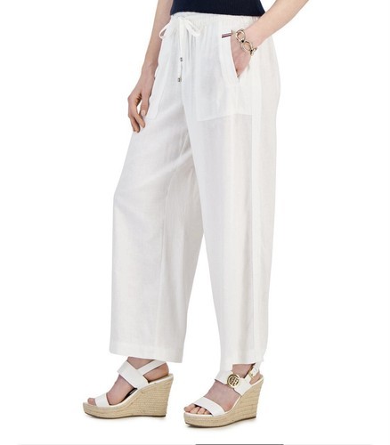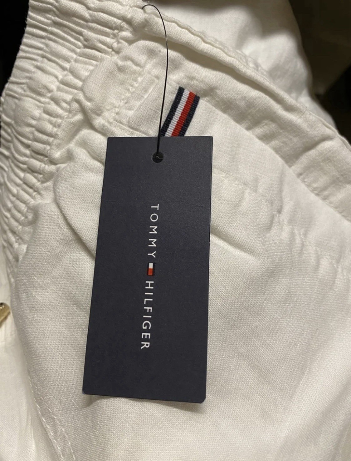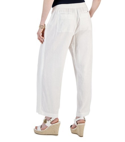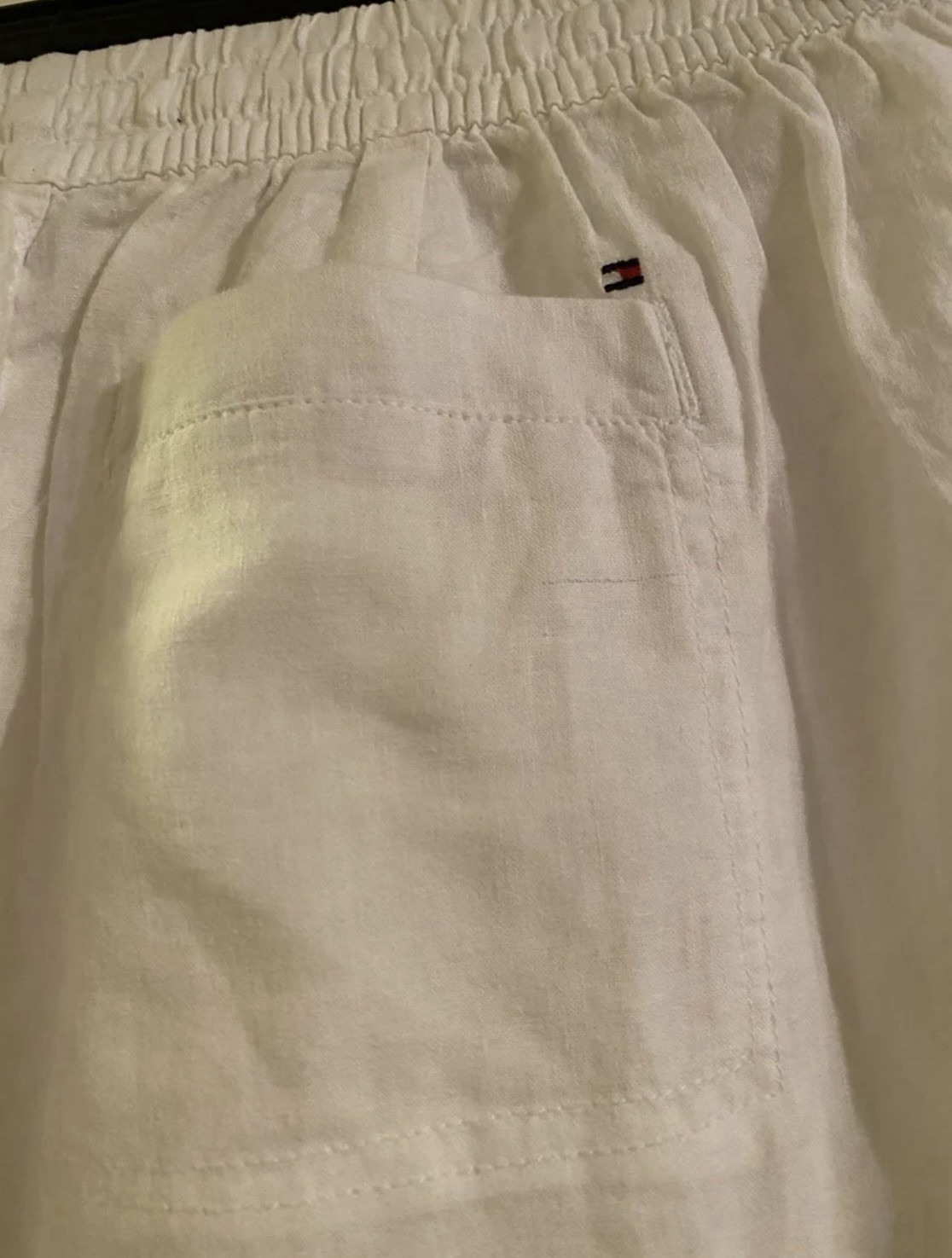 - Linen White Pants Elastic-Waist Ankle Women's Large Size TOMMY HILFIGER NWT