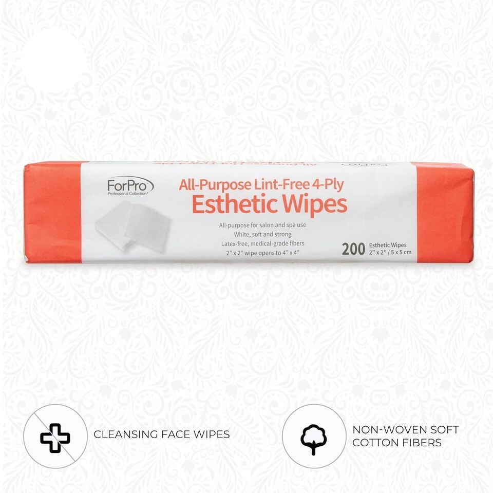 Lint-Free Latex-Free Esthetic Face Wipes - Soft 4-Ply Non-Woven Cleansing Pads for Salon Spa, 2" x 2", 200-Count