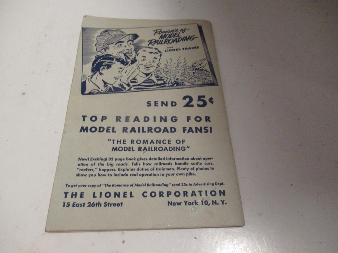 LIONEL TRAINS- EARLY POST-WAR 1951 INSTRUCTION BOOKLET - EXC.-