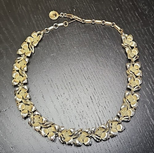 Lisner Vintage Silver Tone Dogwood Pattern 60s Choker Necklace 12-16" Adjustable