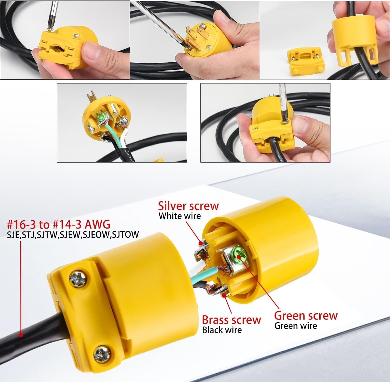 Listed Electrical Replacement Plug & Connector Set with Yellow Shell 125V 15A