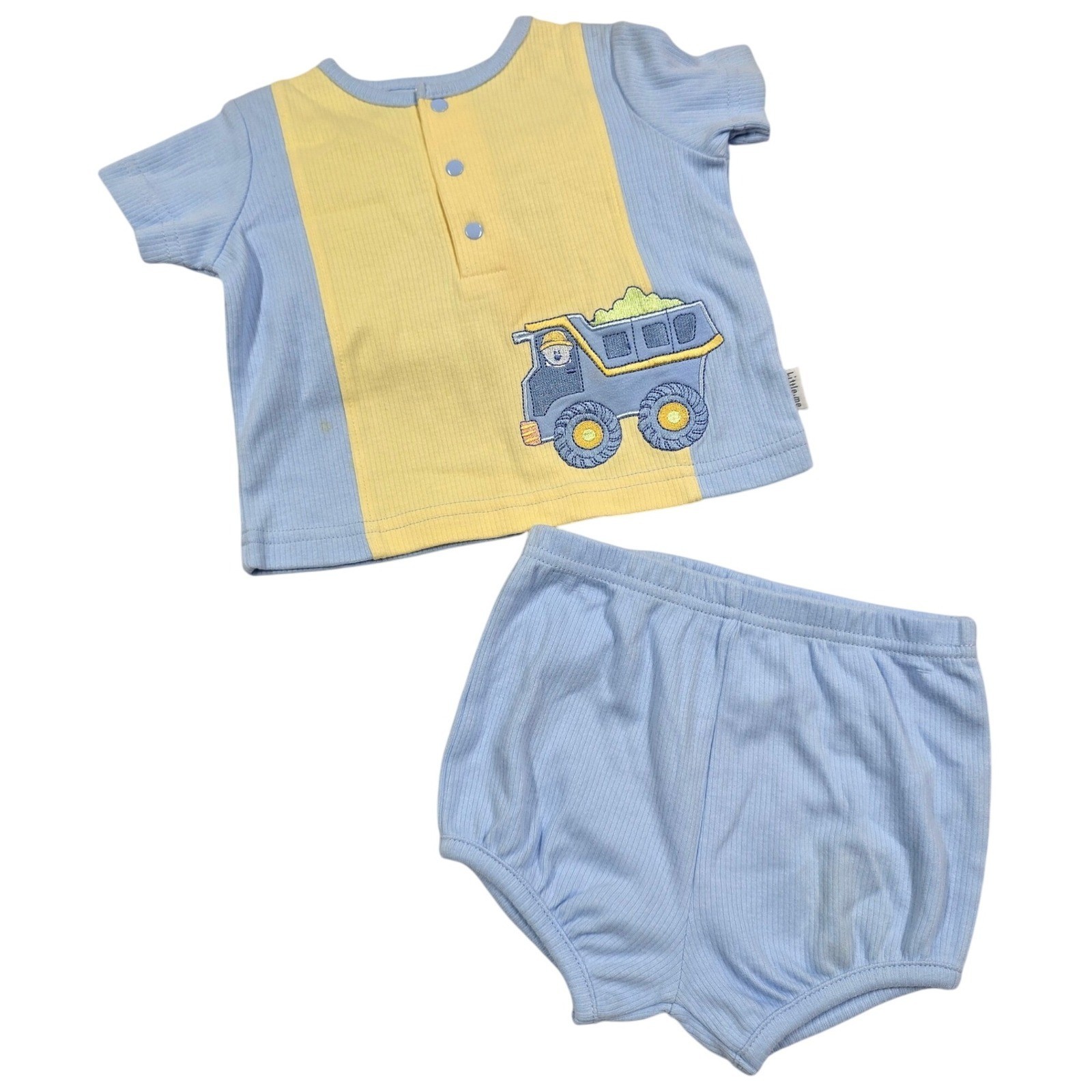 Department: Boys Season: Spring, Summer Theme: Cartoon, TV Movie Characters Style: Shorts Set Set Includes: Shorts, T-Shirt Number of Pieces: 2 Piece Fabric Type: Knit Material: 100% Cotton, Cotton Pattern: Striped Occasion: Casual Type: Outfit/Set Keywords: baby boy clothes, baby outfit, dump truck, construction theme, blue yellow set, 6 month clothing, infant clothes, baby shower gift, cotton baby set, summer baby outfit, spring baby clothes, little me, baby bloomer set, baby shirt shorts No rips, stains, or holes. Ships from a smoke-free household. Ships within 3 business days, if you need your order to ship same day or next, please message me, I can usually accommodate.